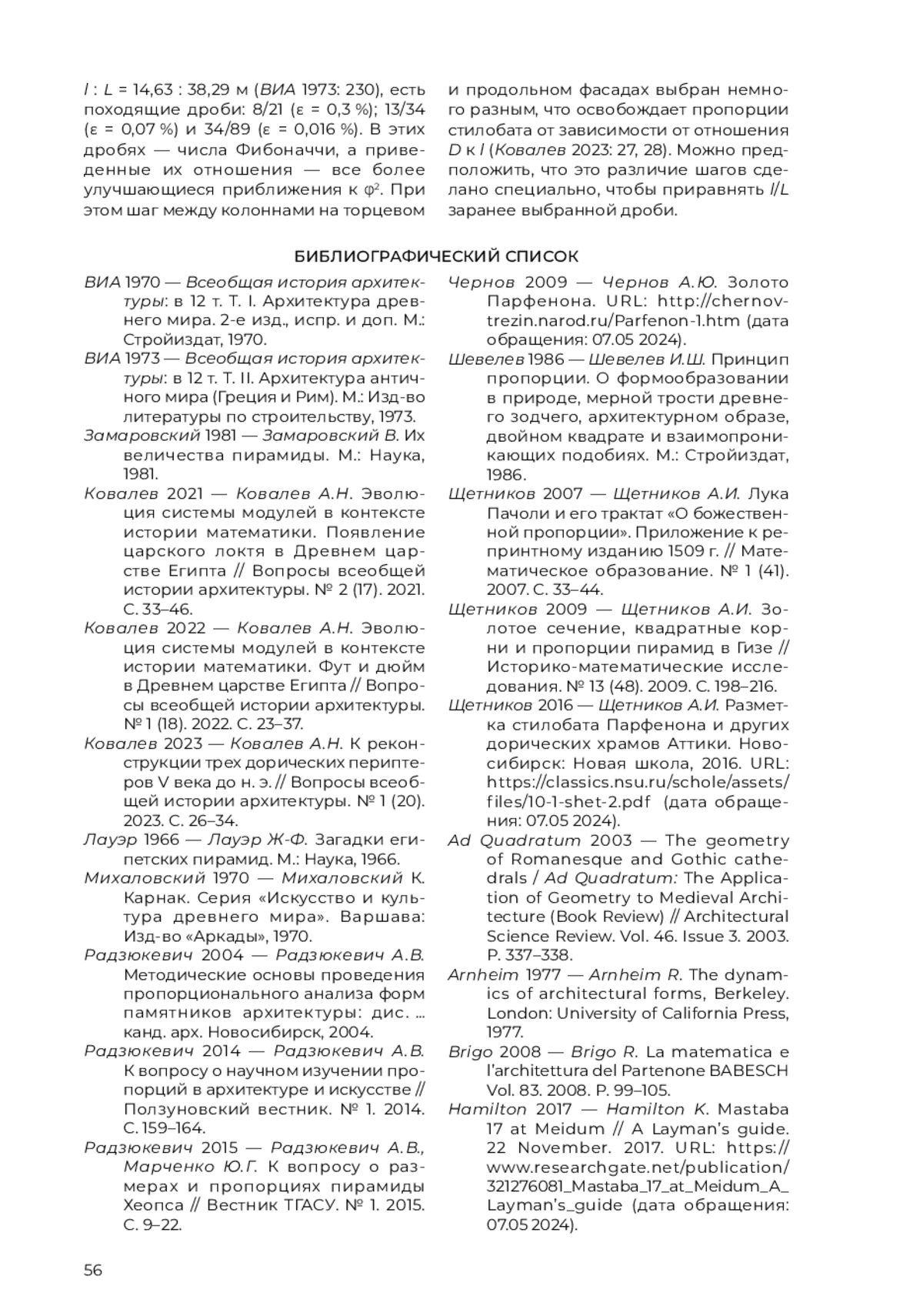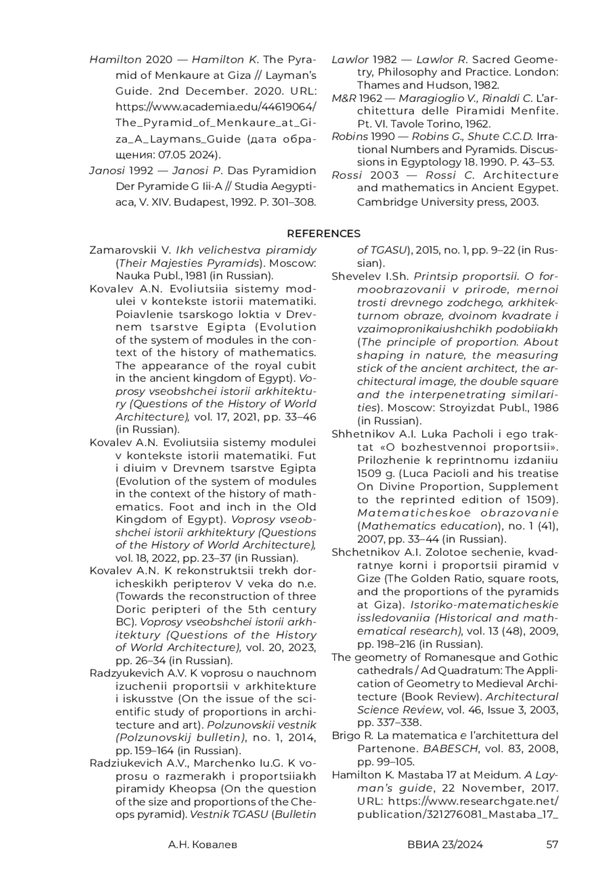 4. Ковалев 2021 - Ковалев А.Н. Эволюция системы модулей в контексте истории математики. Появление царского локтя в Древнем царстве Египта // Вопросы всеобщей истории архитектуры. № 2 (17). 2021. С. 33-46.