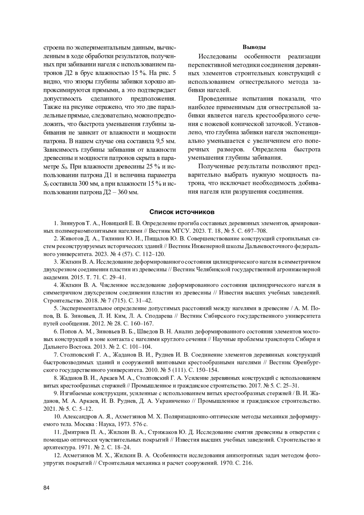 2. 	Животов Д. А., Тилинин Ю. И., Пищалов Ю. В. Совершенствование конструкций стропильных систем реконструируемых исторических зданий // Вестник Инженерной школы Дальневосточного федерального университета. 2023. № 4 (57). С. 112-120.