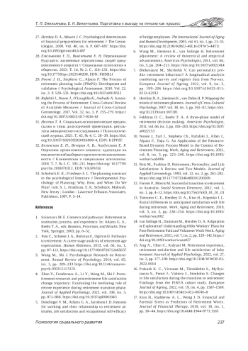 22. Shultz K. S., Wang M. Psychological perspectives on the changing nature of retirement // American Psychologist. 2011. Vol. 66, iss. 3. Р. 170-179. DOI: 10.1037/a0022411