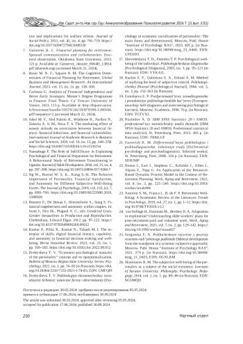 8. 	Basar M. N. F., Sapuan N. M. Th e Cognitive Determinants of Financial Planning for Retirement // Global Business and Management Research: An International Journal. 2023. Vol. 15, iss. 2s. P. 158-168.