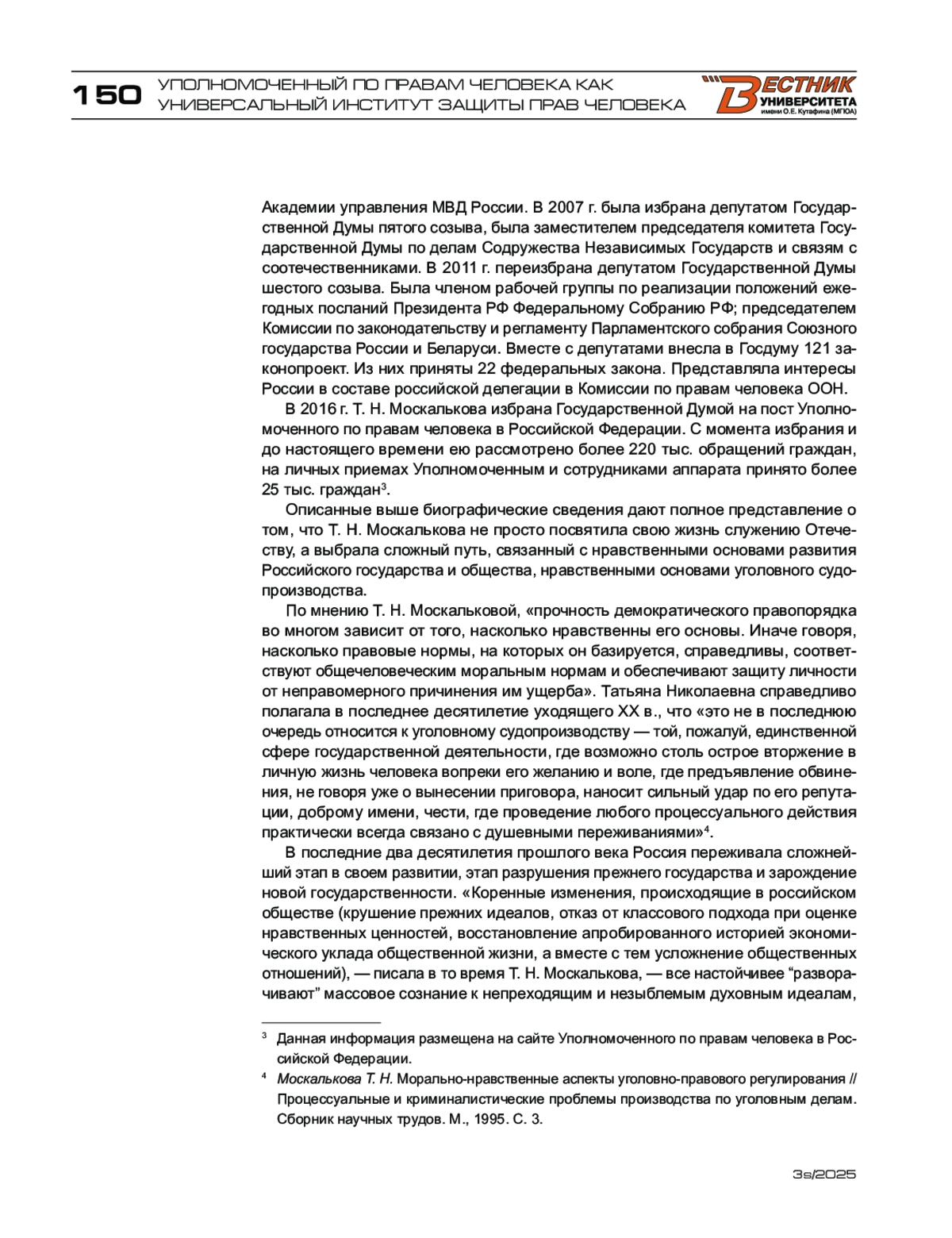 3. Москалькова Т. Н. Нравственные основы уголовного процесса (стадия предварительного расследования) : автореф. дис. ... д-ра юрид. наук. - М., 1997. - 36 с.