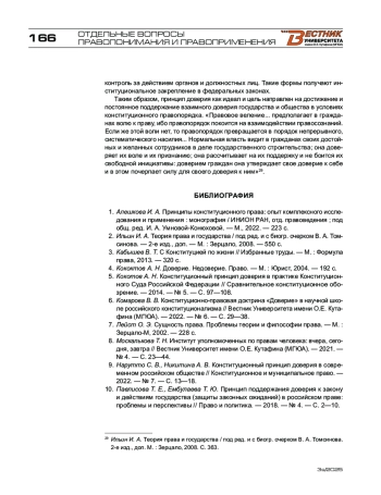 9. Нарутто С. В., Никитина А. В. Конституционный принцип доверия в современном российском обществе // Конституционное и муниципальное право. - 2022. - № 7. - С. 13-18.