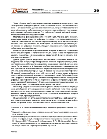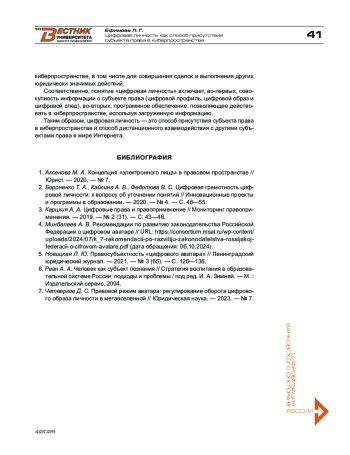 1. Аксенова М. А. Концепция «электронного лица» в правовом пространстве // Юрист. - 2020. - № 7.