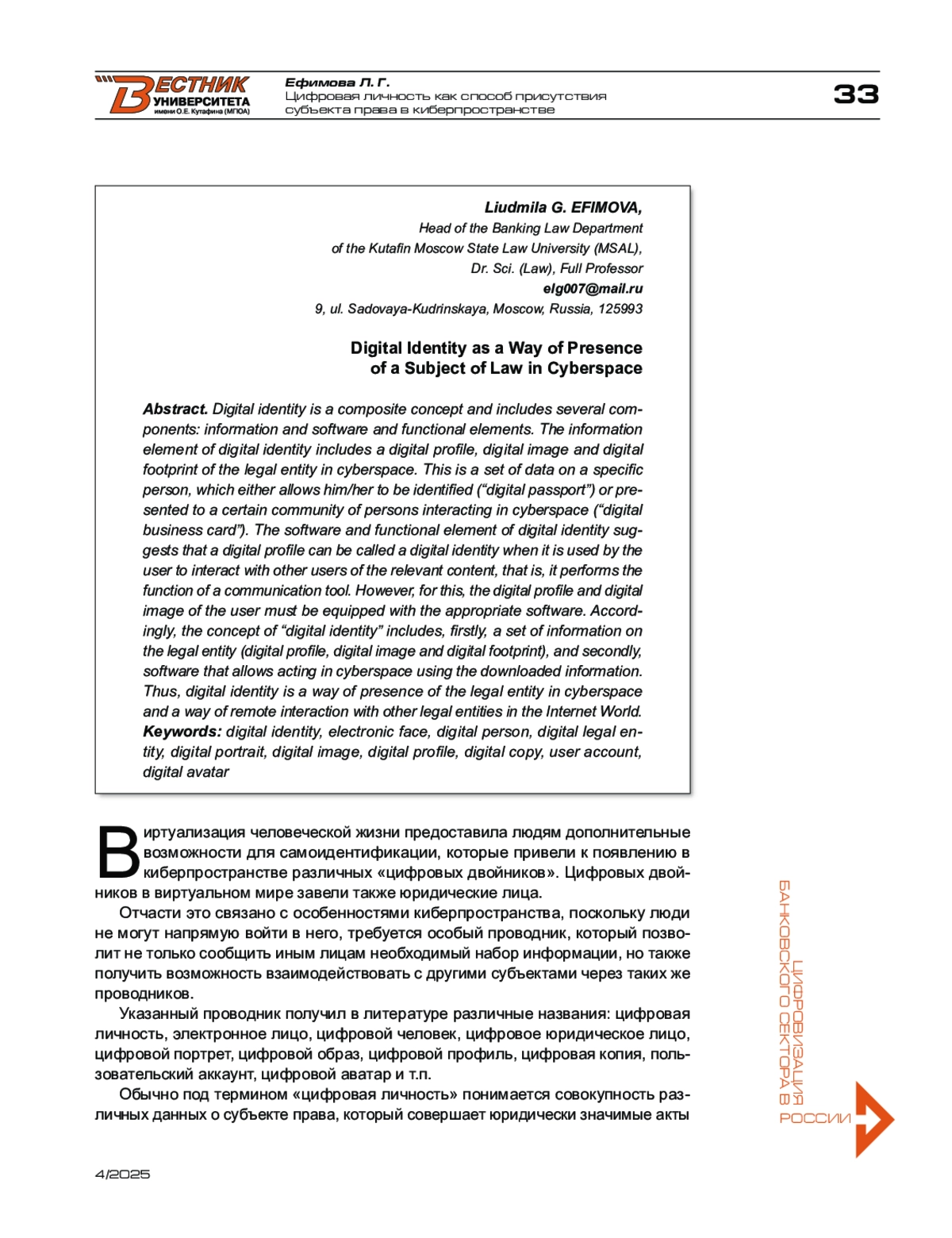 Для цитирования: Шпаковский Ю. Г. Национализация кредитной системы Российской империи. Вестник Университета имени О. Е. Кутафина (МГЮА). 2025;1(4):219-220.