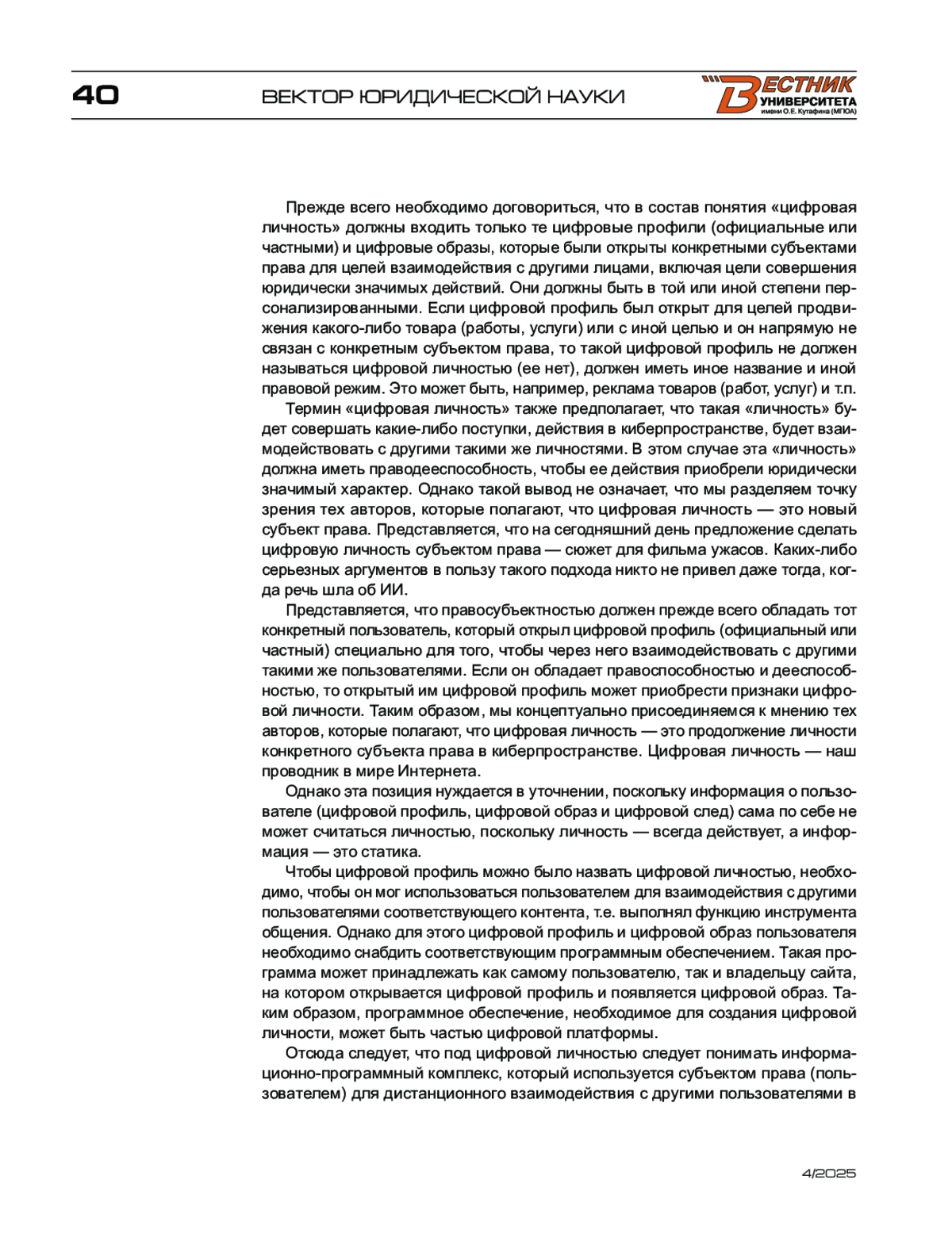 5. Новицкая Л. Ю. Правосубъектность «цифрового аватара» // Ленинградский юридический журнал. - 2021. - № 3 (65). - С. 128-136.