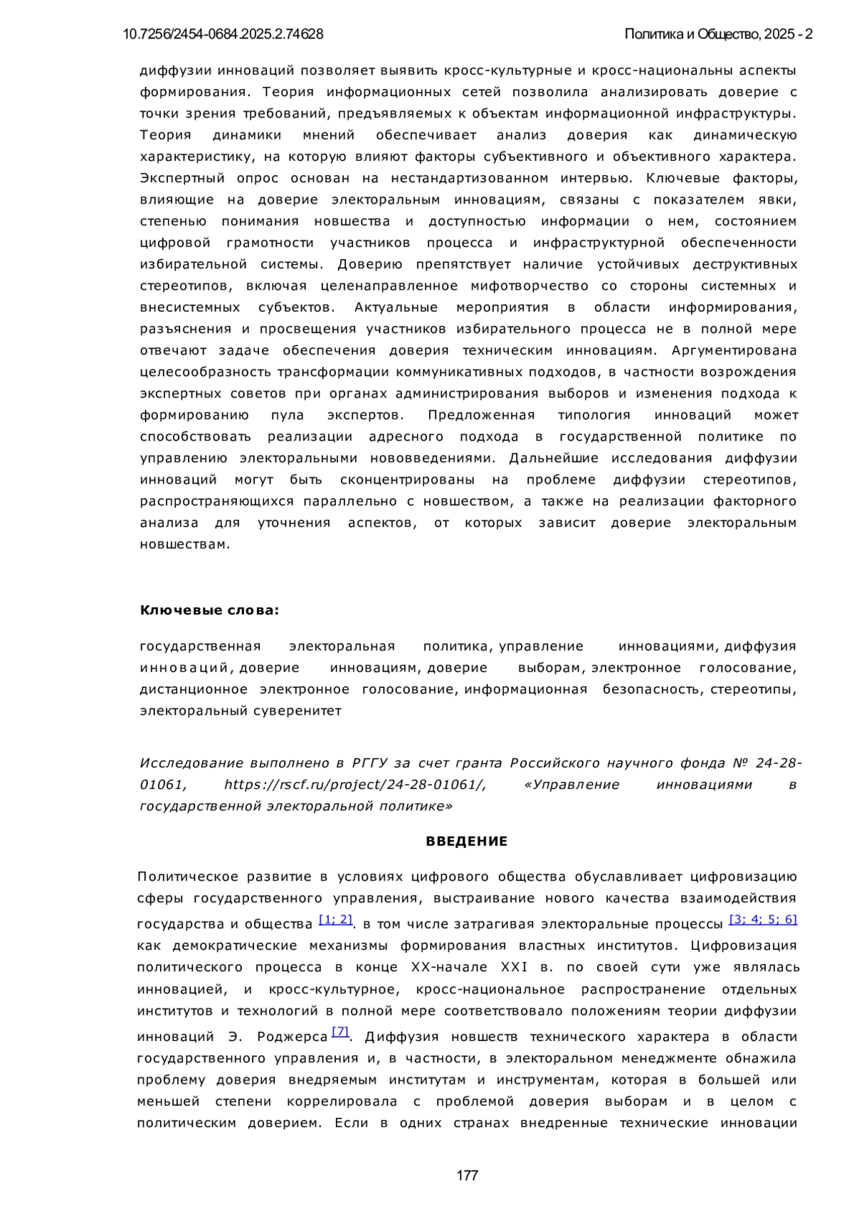 32. Гришин Н. В. Политические элиты и инновации в государственной электоральной политике // Вопросы элитологии. 2024. Т. 5, № 3. С. 75-88. DOI: 10.46539/elit.v5i3.208