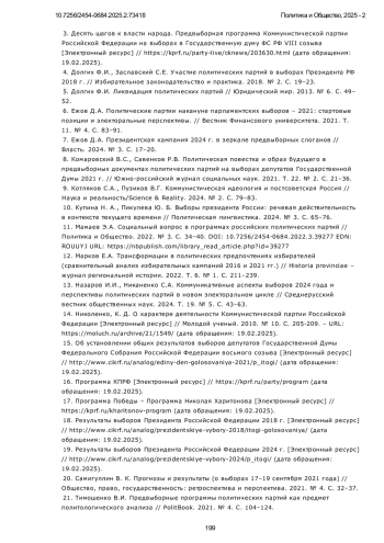 19. 	Результаты выборов Президента Российской Федерации 2024 г. [Электронный ресурс] // http://www.cikrf.ru/analog/prezidentskiye-vybory-2024/p_itogi/ (дата обращения: 19.02.2025).