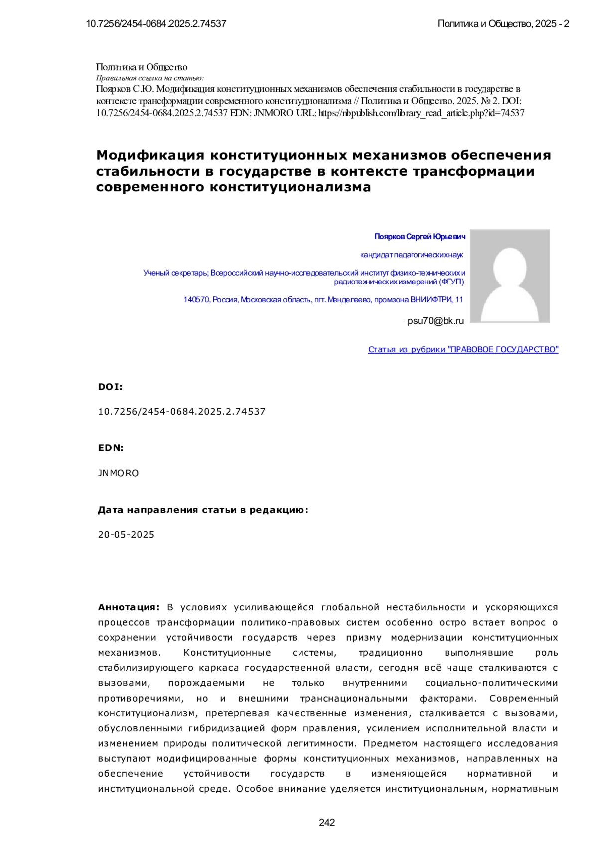 9. Поярков С.Ю. Трансформация конституционализма в современном обществе: концептуальные основания // Право и политика. 2025. № 4. С. 105-122. URL: https://nbpublish.com/library_read_article.php?id=74044. DOI: 10.7256/2454-0706.2025.4.74044