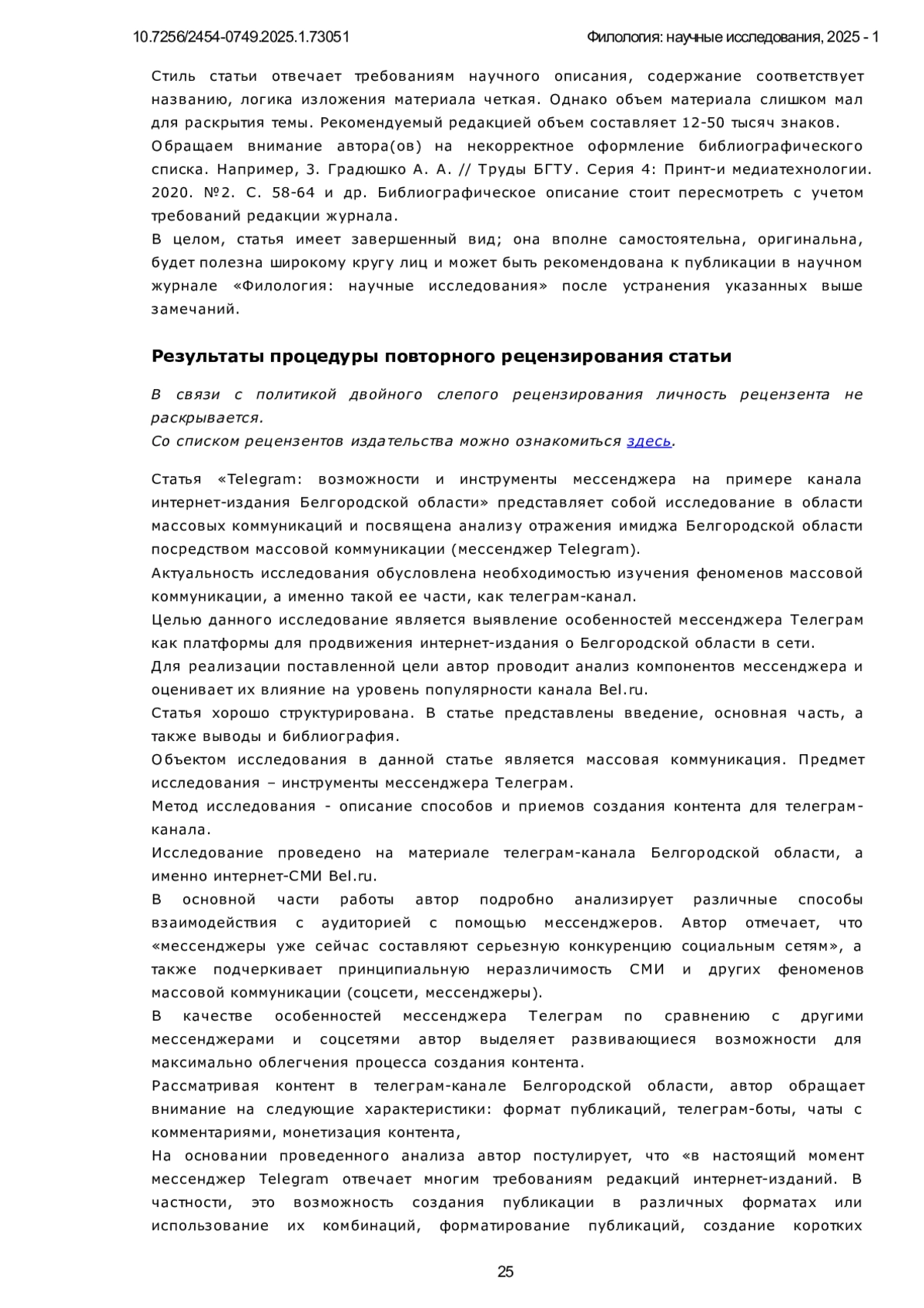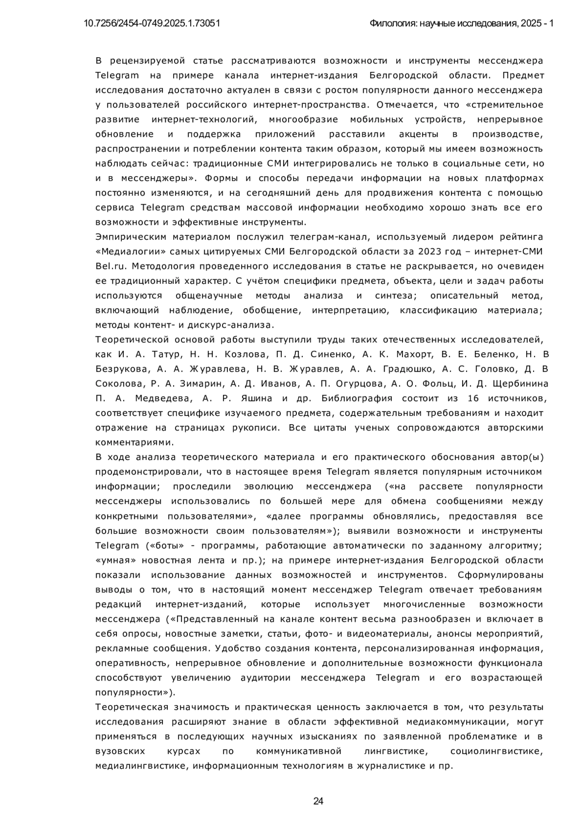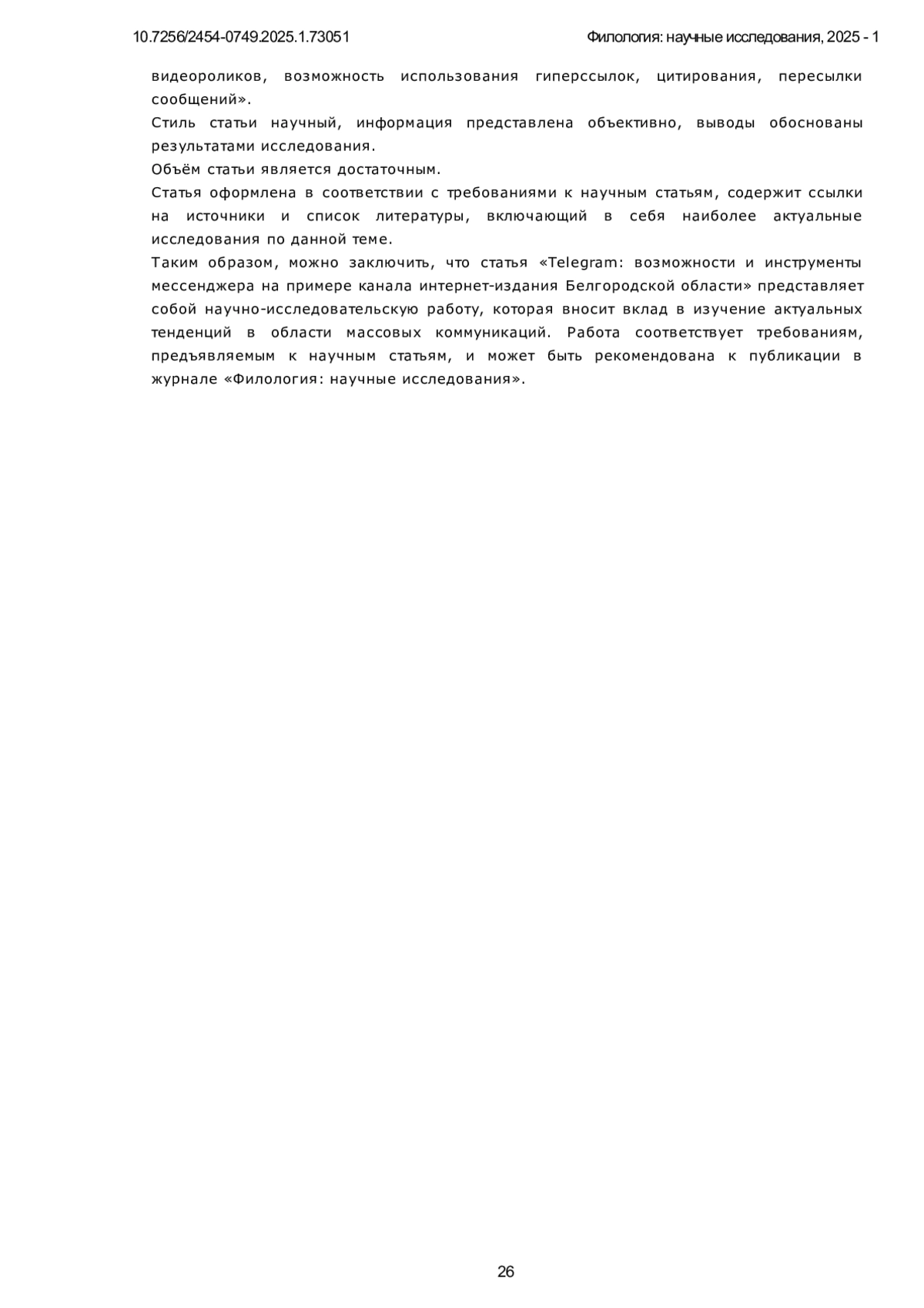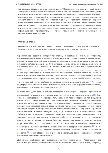 10. 	Огурцова, А. П. Особенности структурирования журналистского контента Telegram-канала // Медиасреда. 2023. № 1. С. 14-18.