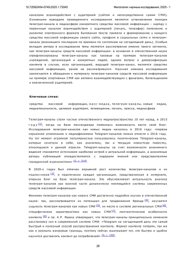 5. 	Дорохин В.Н. Феномен политических Telegram-каналов как инновационных цифровых СМИ в России // Вестник Воронеж. гос. ун-та. Серия: Филология. Журналистика. 2019. № 1. С. 103-105.