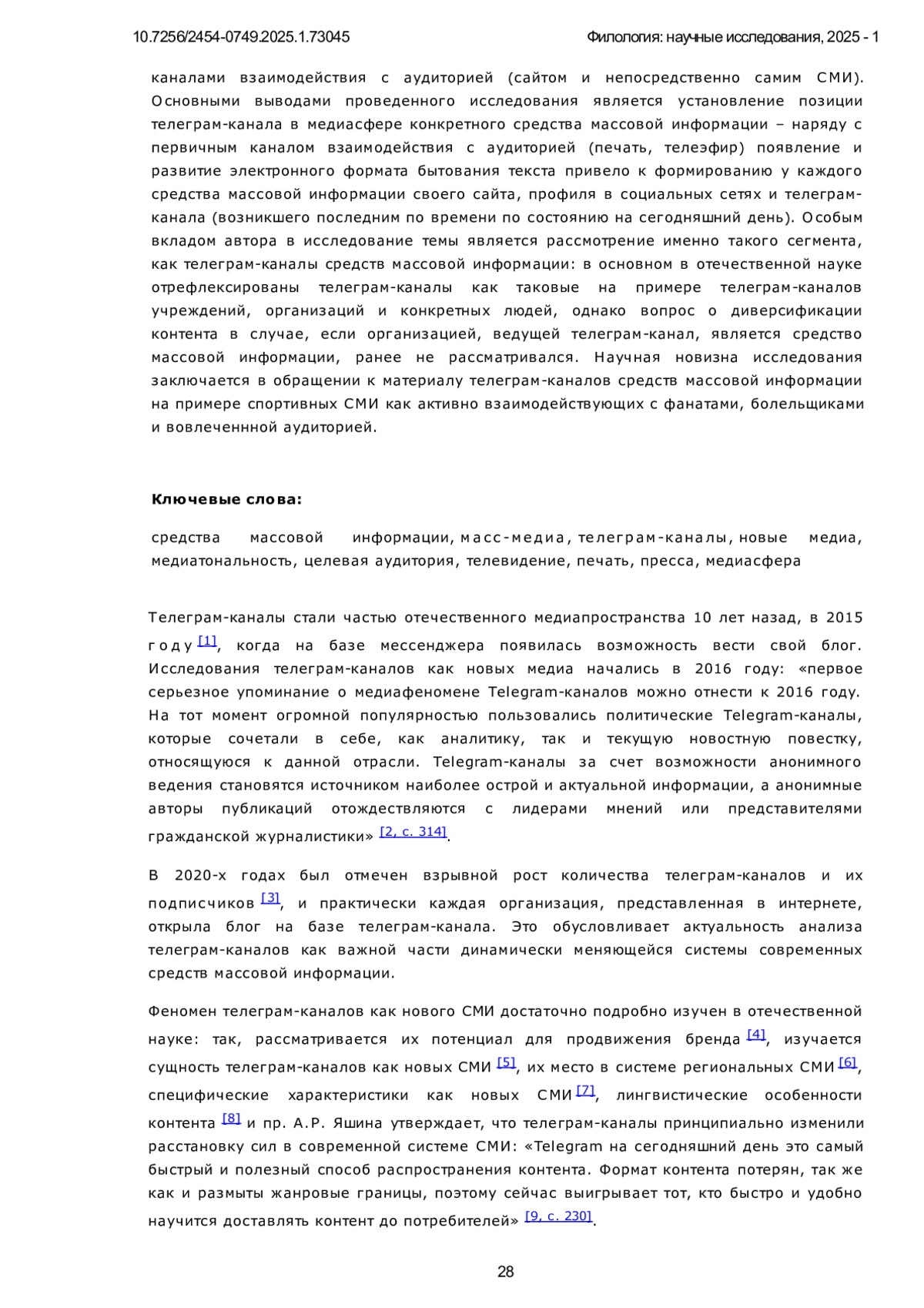 3. 	Демидкина К. Аудитория русскоязычных каналов в Telegram выросла вдвое за 2022 год // URL: https://www.forbes.ru/svoi-biznes/483954-auditoria-russkoazycnyh-kanalov-v-telegram-vyrosla-vdvoe-za-2022-god (дата обращения 14.01.2025).