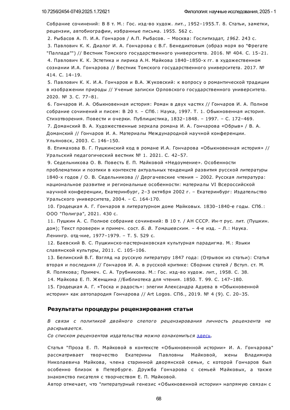 8. Епимахова В. Г. Пушкинский код в романе И.А. Гончарова “Обыкновенная история” // Уральский педагогический вестник № 1. 2021. С. 42-57.