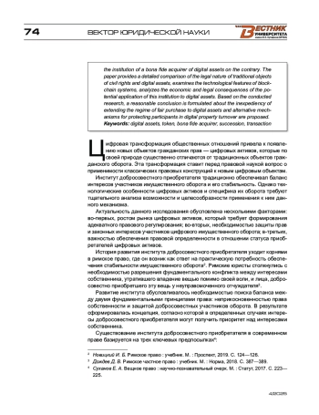8. Санникова Л. В., Харитонова Ю. С. Цифровые активы как объекты предпринимательского оборота // Право и экономика. - 2018. - № 4. - С. 27-34.