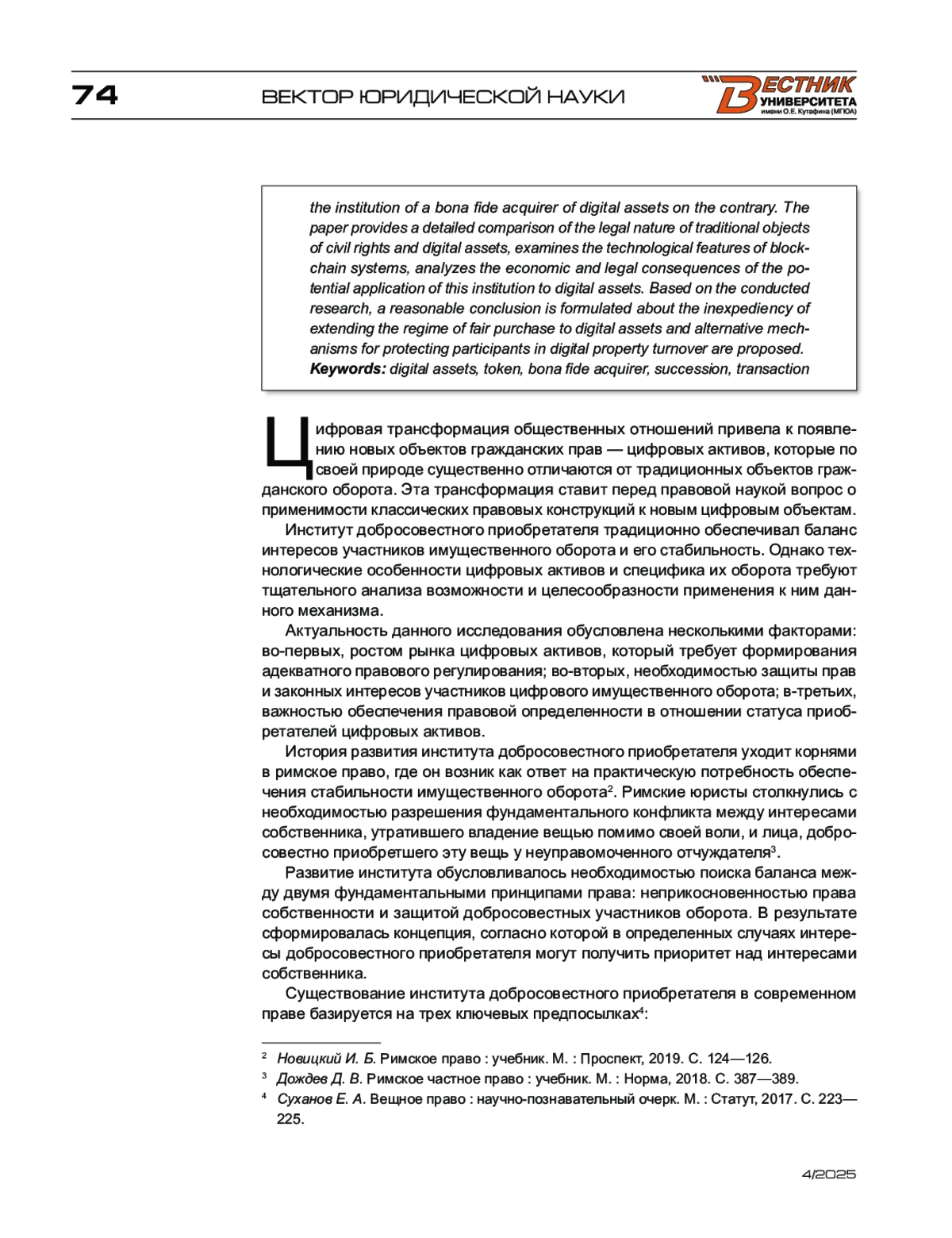 Институт добросовестного приобретателя традиционно обеспечивал баланс интересов участников имущественного оборота и его стабильность. Однако технологические особенности цифровых активов и специфика их оборота требуют тщательного анализа возможности и целесообразности применения к ним данного механизма.