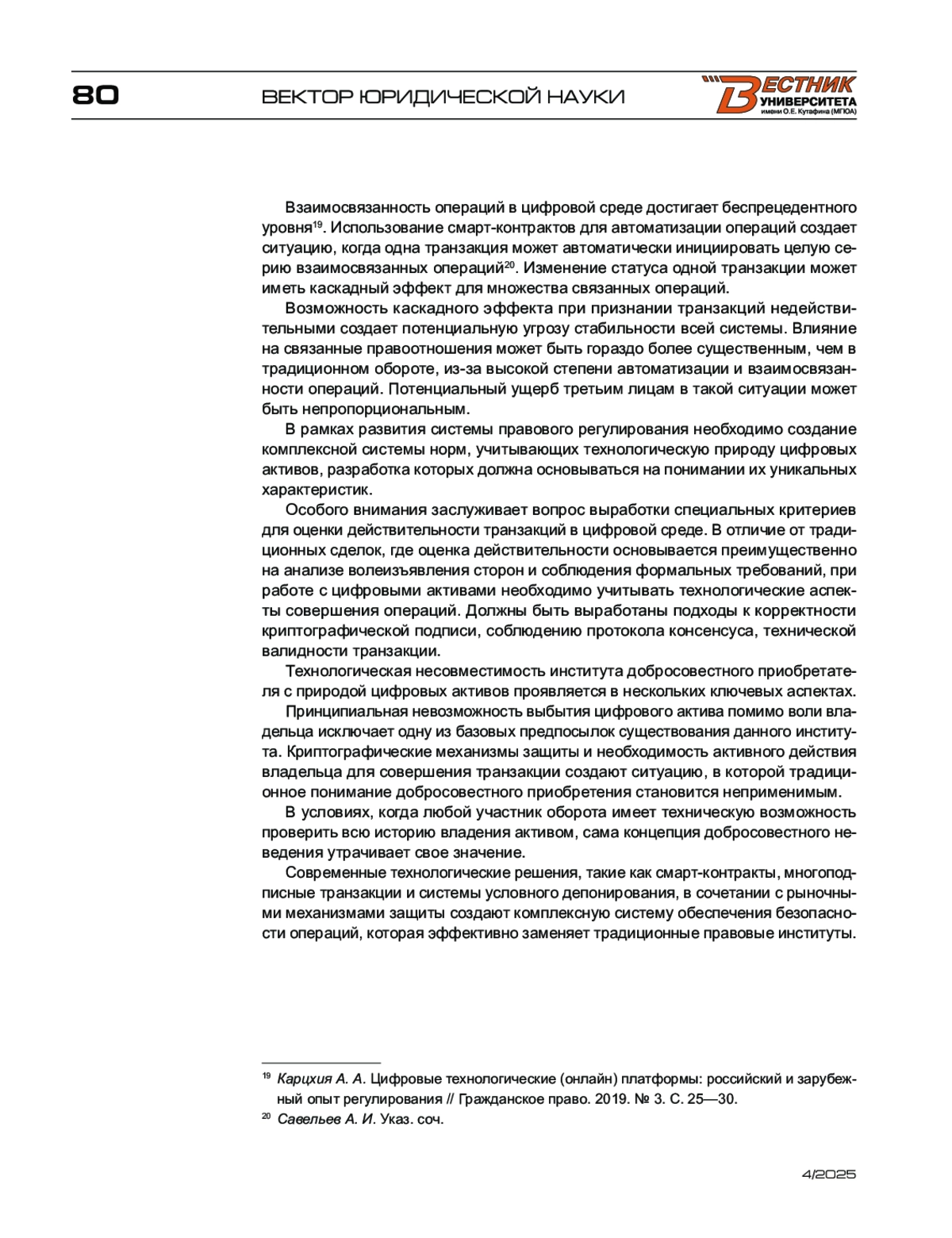4. Карцхия А. А. Цифровые технологические (онлайн) платформы: российский и зарубежный опыт регулирования // Гражданское право. - 2019. - № 3. - С. 25-30.