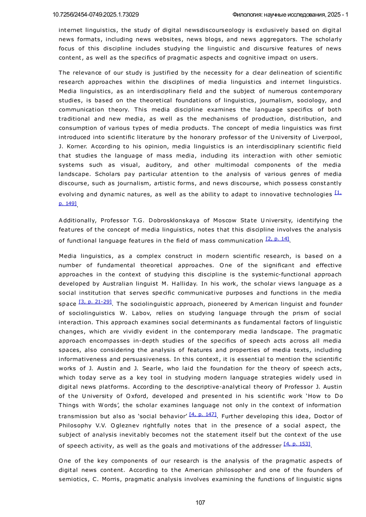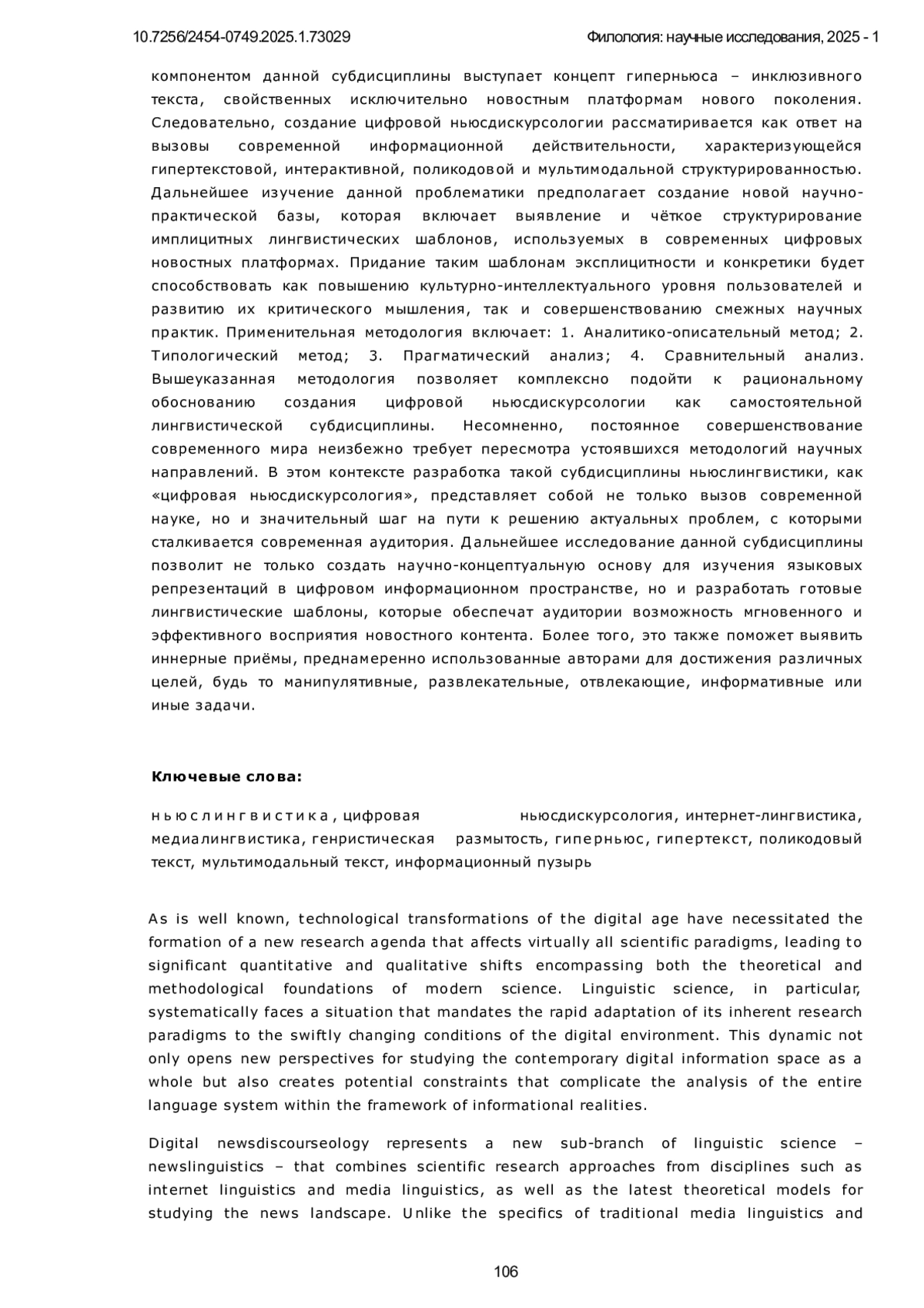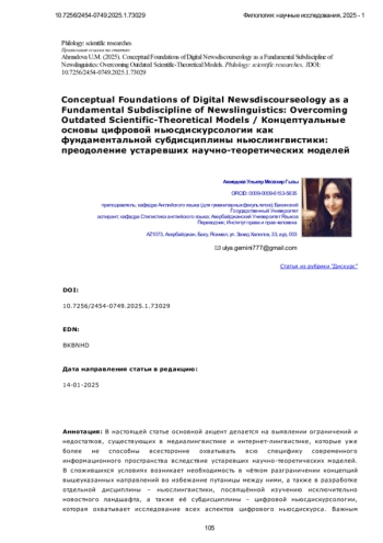 A s is well known, technological transformations of the digital age have necessitated the formation of a new research agenda that affects virtually all scientific paradigms, leading to significant quantitative and qualitative shifts encompassing both the theoretical and methodological foundations of modern science. Linguistic science, in particular, systematically faces a situation that mandates the rapid adaptation of its inherent research paradigms to the swiftly changing conditions of the digital environment. This dynamic not only opens new perspectives for studying the contemporary digital information space as a whole but also creates potential constraints that complicate the analysis of the entire language system within the framework of informational realities.