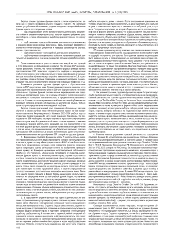 В представленной работе анализируется специфика профессионального коммуникативного подхода в обучении будущих юристов, методы и подходы к развитию юридико-коммуникативной компетентности у студентов юридических вузов. Основная идея статьи заключается в том, что юридико-коммуникативная компетентность представляет собой важный показатель успеха будущих юристов в профессиональной среде. Авторы отмечают, что для формирования этой компетентности необходимо учитывать, как профессиональные знания и навыки, так и коммуникативные способности и ценностные ориентации студентов. Статья подчеркивает важность интегративной модели обучения, которая объединяет теоретические и практические аспекты, а также акцентирует внимание на необходимости использования междисциплинарного подхода в преподавании, охватывающего психологию, конфликтологию, риторику и другие дисциплины. Комплексный подход к развитию юридико-коммуникативной компетентности способствует формированию профессионализма будущих юристов. Логическим завершением работы является выделение условий, необходимых для успешной реализации модели юридико-коммуникативной компетентности, таких как правовая грамотность, коммуникативные навыки, умение вести переговоры и соблюдать этические нормы и др. Результаты исследования способствуют дополнению и обновлению научных представлений о важности коммуникативной компетентности для юристов и служат практическим руководством для педагогов, стремящихся повысить качество подготовки будущих специалистов в области права.