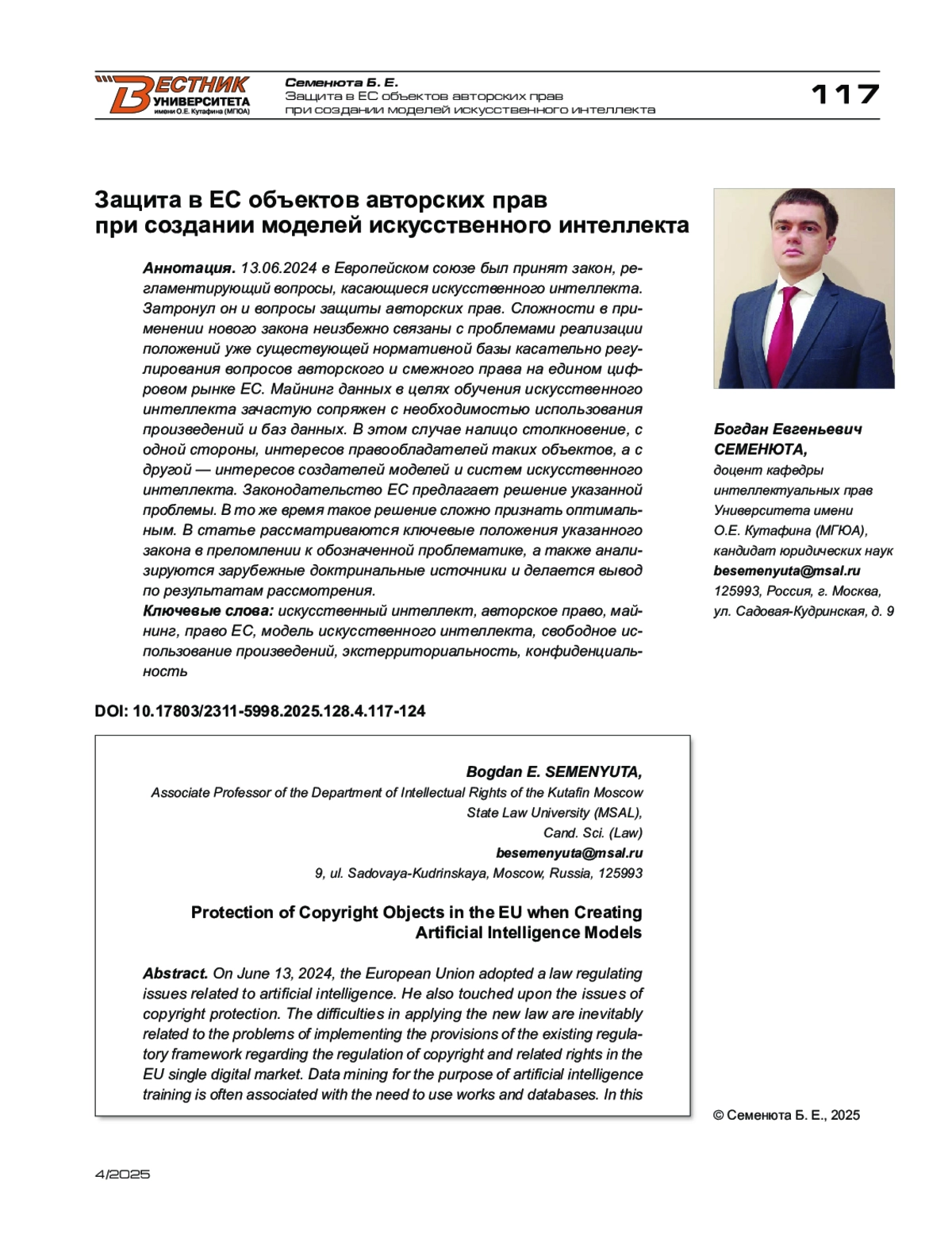 Для цитирования: Шпаковский Ю. Г. Национализация кредитной системы Российской империи. Вестник Университета имени О. Е. Кутафина (МГЮА). 2025;1(4):219-220.