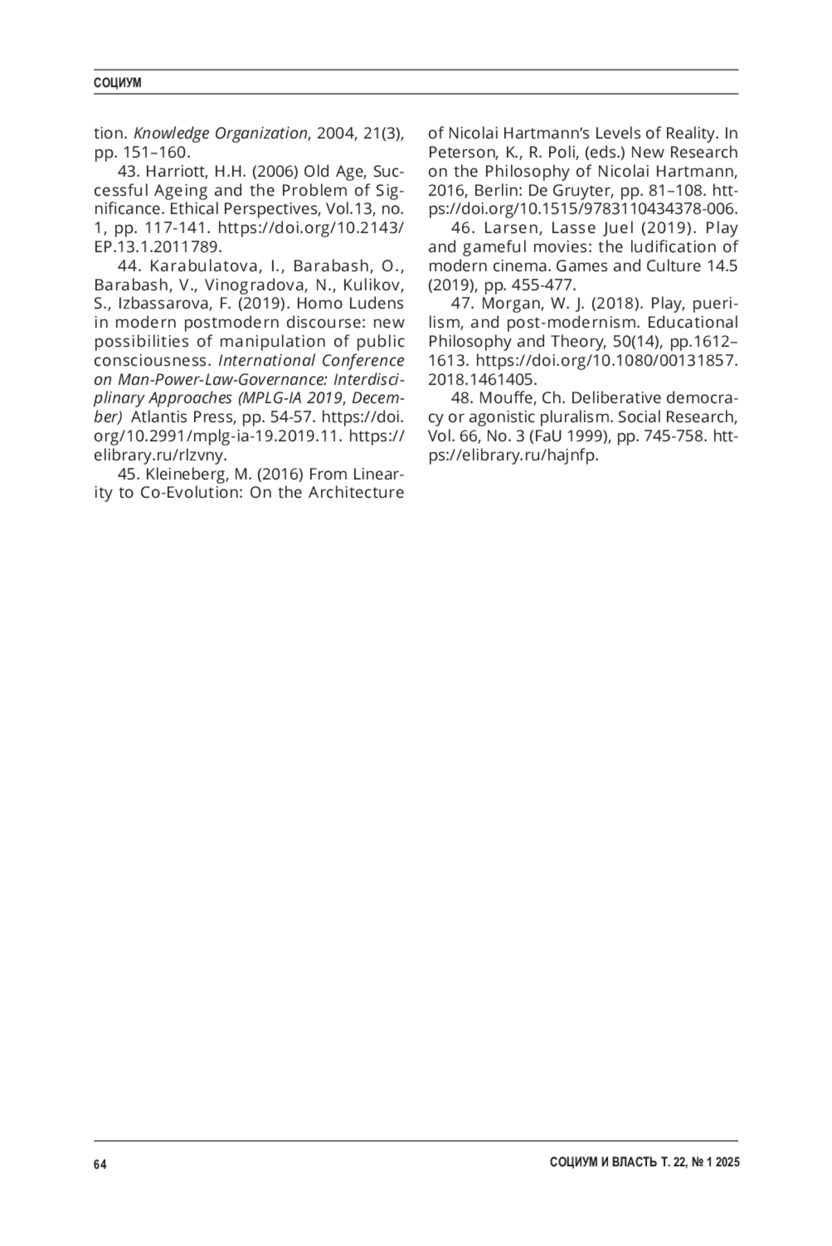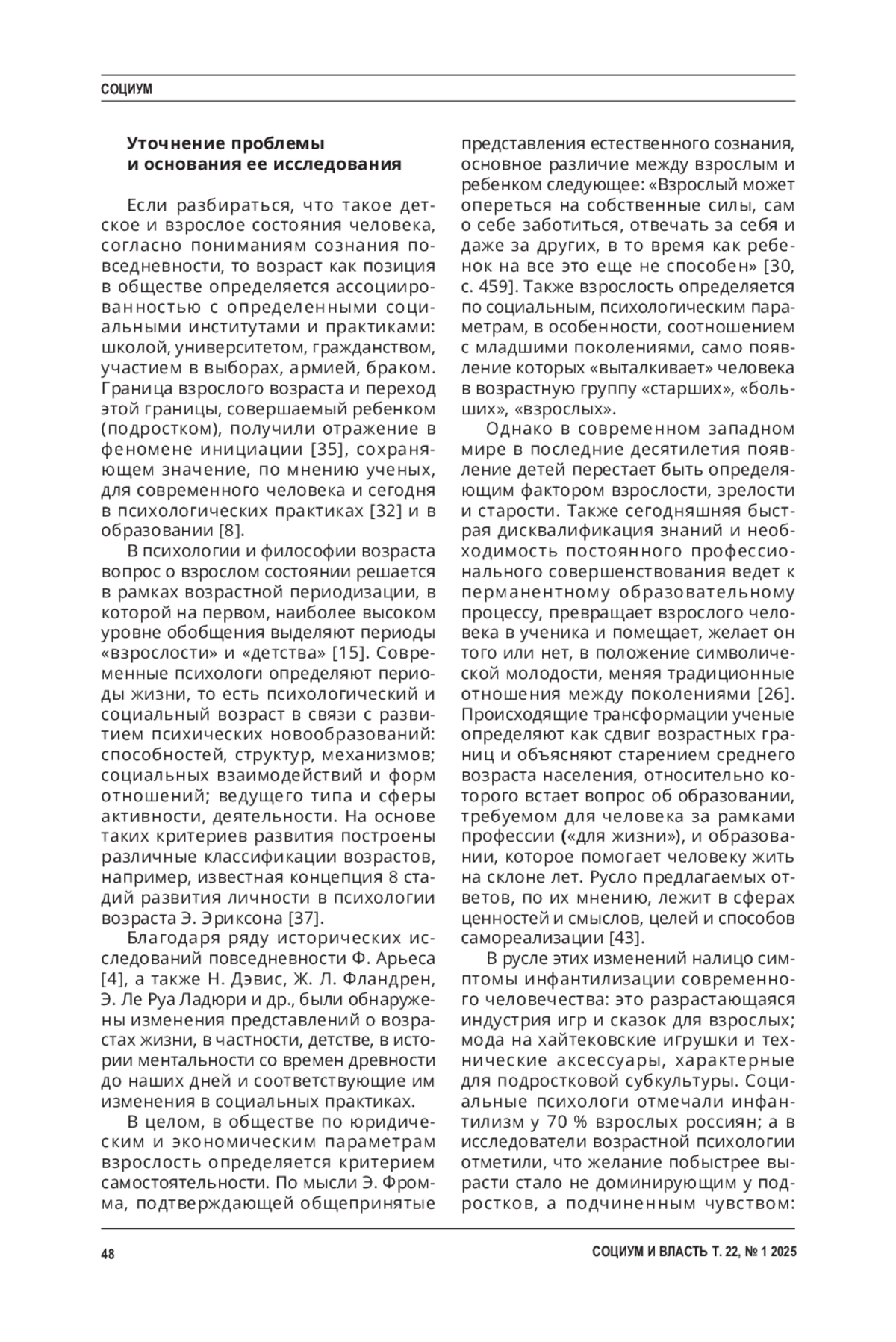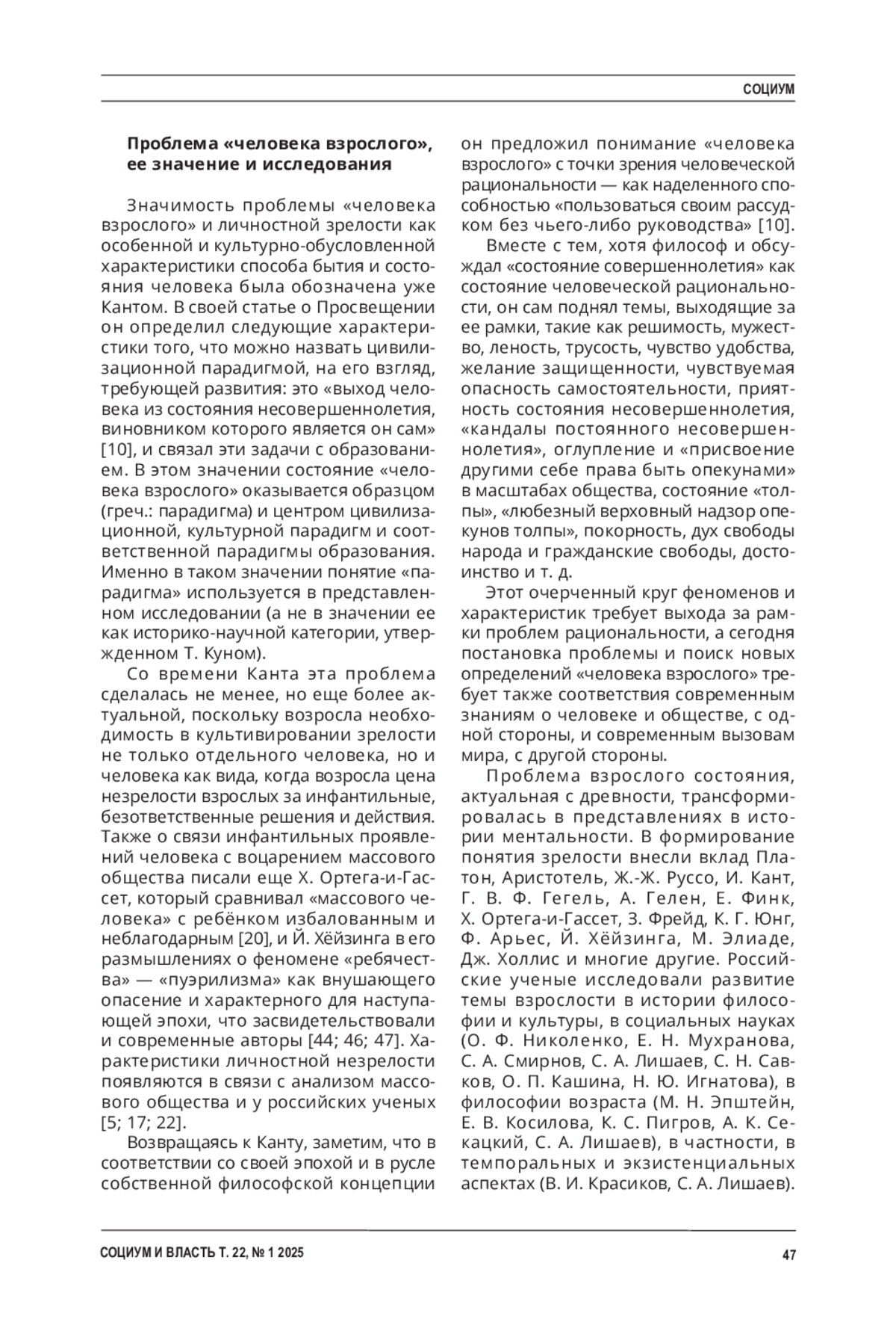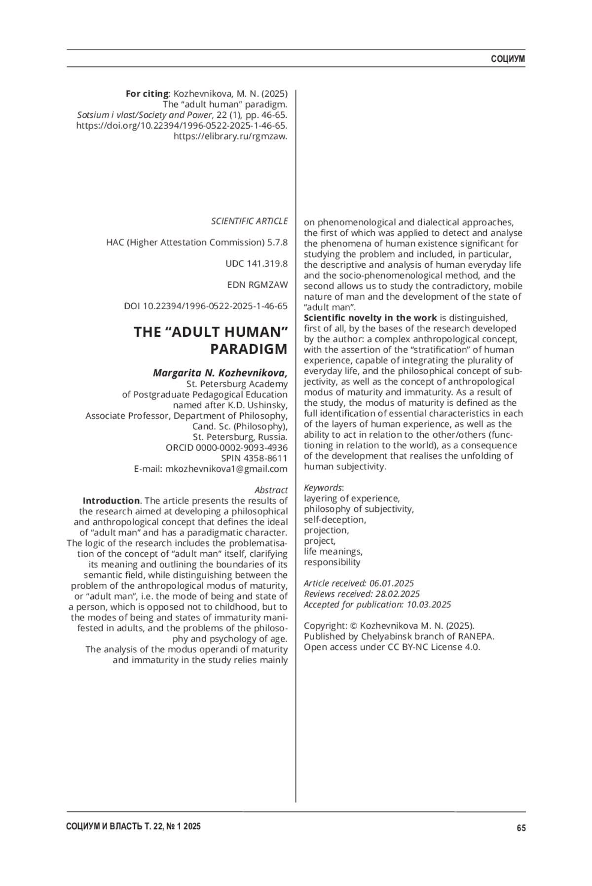 КОЖЕВНИКОВА М. Н. ПАРАДИГМА «ЧЕЛОВЕКА ВЗРОСЛОГО» // СОЦИУМ И ВЛАСТЬ. 2025. Т. 22 № 1