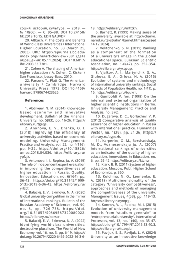 Выводы. Предлагаемая рейтинговая модель может быть пилотирована на группе образовательных организаций высшего образования, либо может логически лечь в основу развития существующих отечественных рейтинговых систем. Реализация иерархического подхода к составлению рейтингов российских вузов позволит повысить эффективность обмена информацией на рынке образовательных услуг за счет адаптации к пути выбора поступающего: от вуза к направлению подготовки и конкретной образовательной программе.