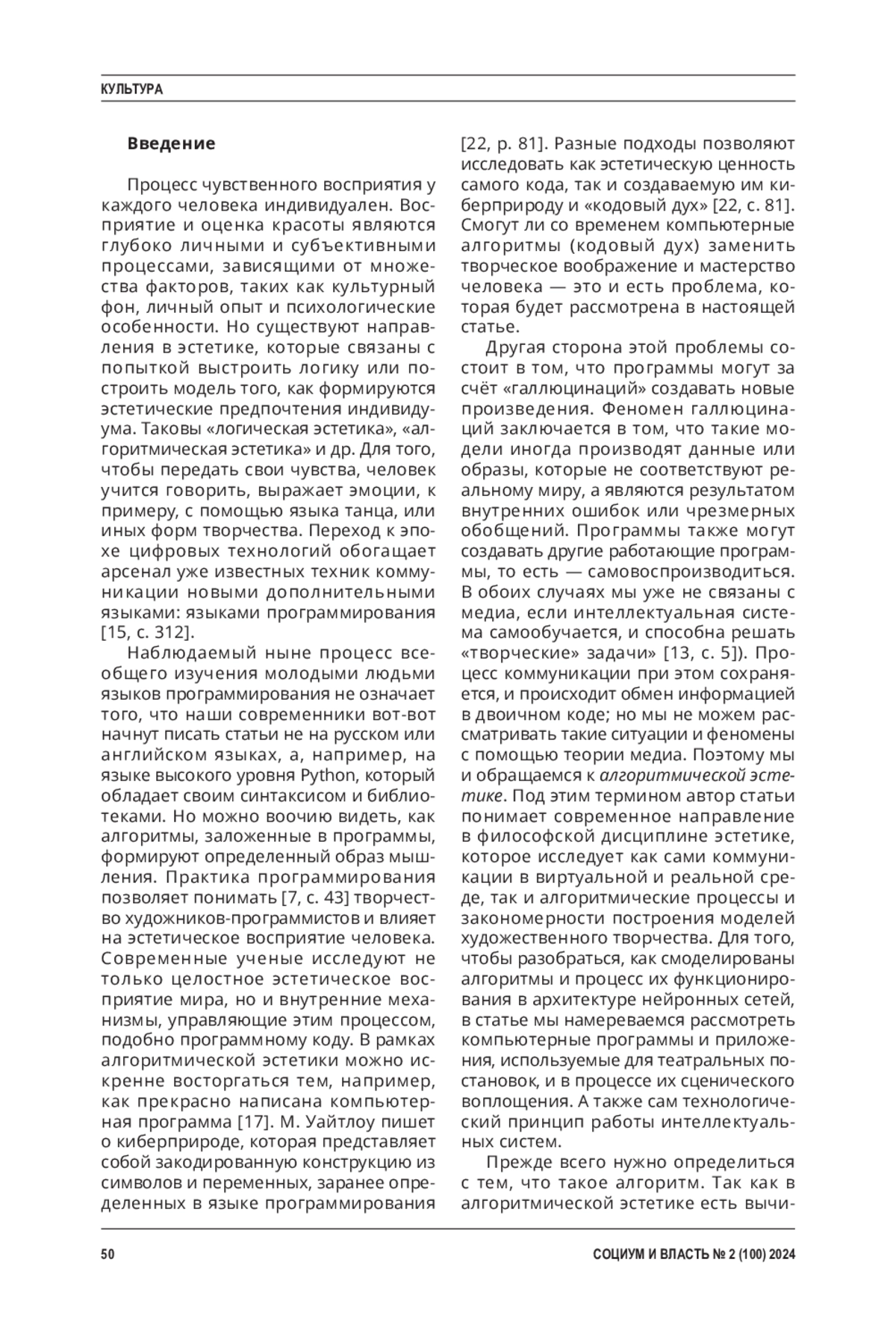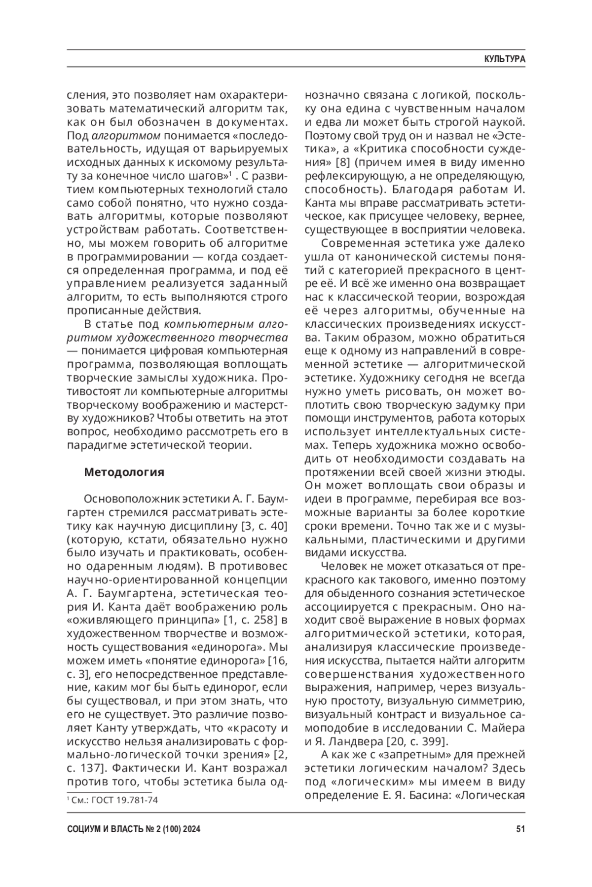 7. 	Деникин, А. А. Постцифровая эстетика в арт-практиках цифрового искусства / А. А. Деникин // Обсерватория культуры. - 2017. - Т. 14, № 1. - С. 36-45. -.  DOI: 10.25281/2072-3156-2017-14-1-3645  EDN: YLKYWX
