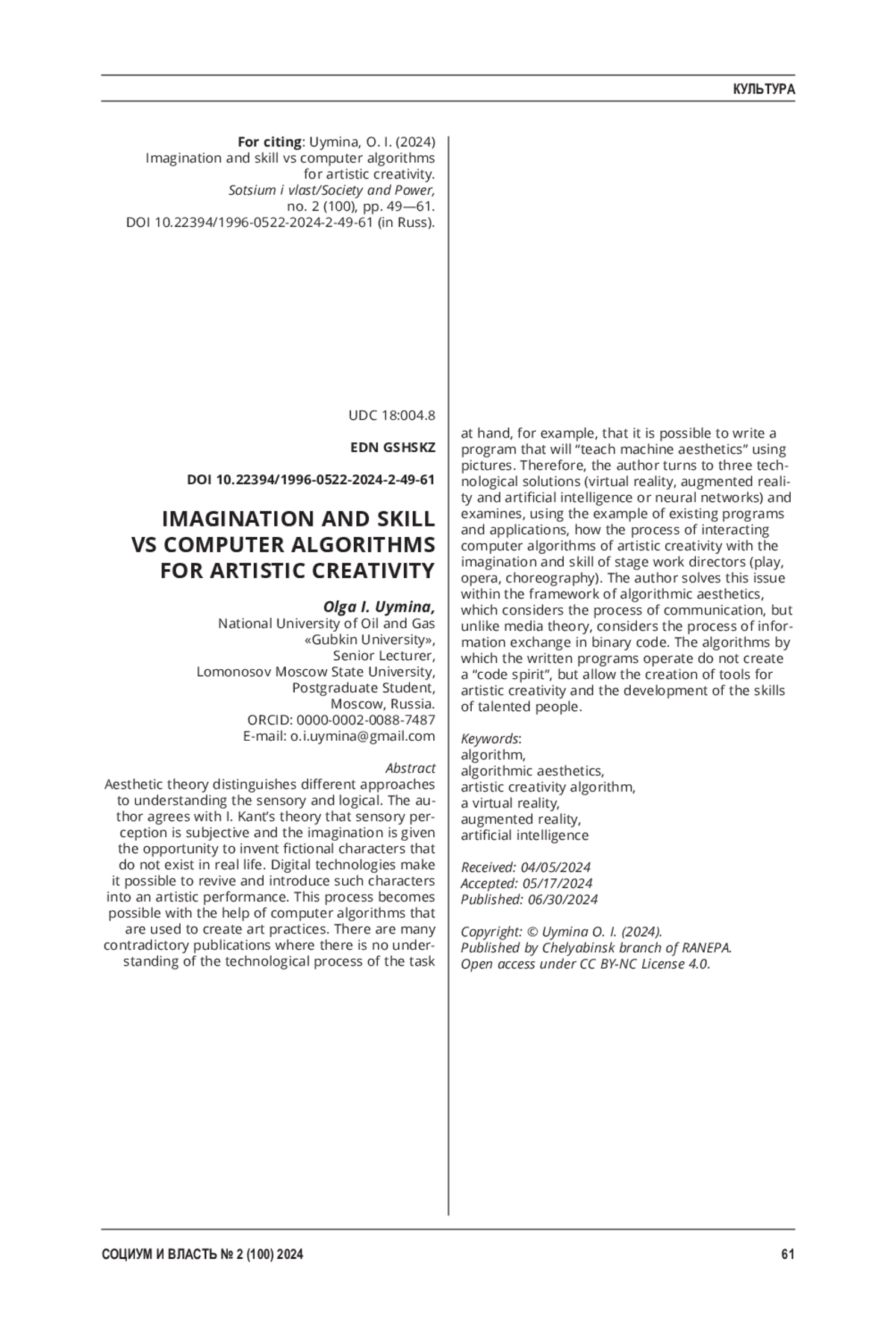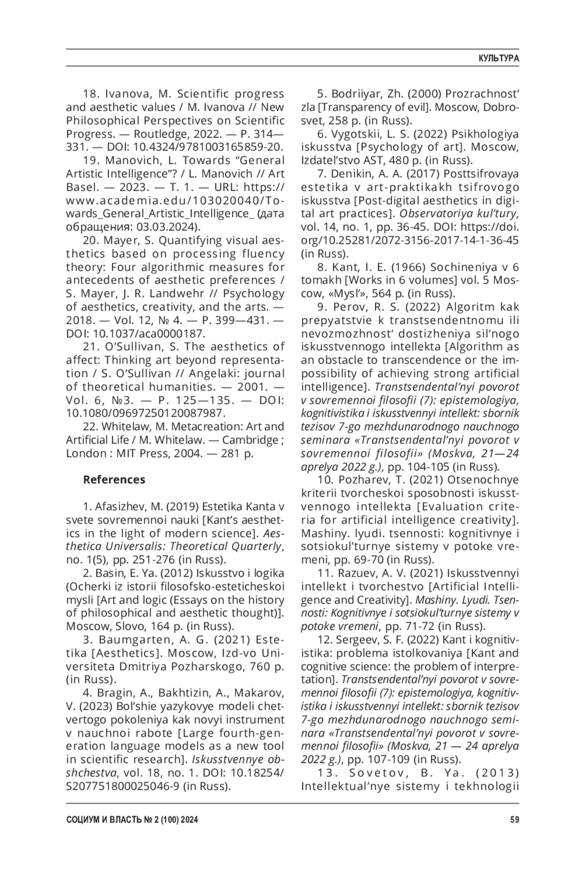 19. 	Manovich, L. Towards “General Artistic Intelligence”? / L. Manovich // Art Basel. - 2023. - Т. 1. - URL: https://www.academia.edu/103020040/Towards_General_Artistic_Intelligence_(дата обращения: 03.03.2024).