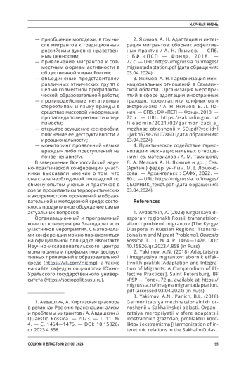 1. 	Авдашкин, А. Киргизская диаспора в регионах России: транснационализм и проблемы мигрантов / А. Авдашкин // Quaestio Rossica. - 2023. - Т. 11, № 4. - С. 1464-1476. - 10.15826/ qr.2023.4.858. DOI: 10.15826/qr.2023.4.858 EDN: DQRUOT