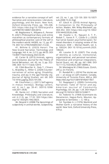 32. 	Троцук, И. В. Нарратив как междисциплинарный методологический конструкт в современных социальных науках / И. В. Троцук // Вестник Российского университета дружбы народов. Серия: Социология. - 2004. - № 1 (6-7). - С. 56-74.  EDN: HRREDB