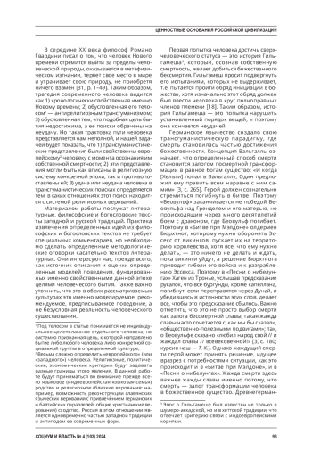 В середине ХХ века философ Романо Гвардини писал о том, что человек Нового времени стремится выйти за пределы человеческой природы, оказывается в метафизическом изгнании, теряет свое место в мире и утрачивает свою природу, не приобретя ничего взамен [31, p. 1–49]. Таким образом, трагедия современного человека видится как 1) хронологически свойственная именно Новому времени; 2) обусловленная его телосом 1 — антирелигиозным трансгуманизмом; 3) обусловленная тем, что подобная цель бытия недостижима, а ее поиски обречены на неудачу. Но такая трактовка пути человека представляется нам неполной, и нашей задачей будет показать, что 1) трансгуманистические представления были свойственны европейскому2 человеку с момента осознания им собственной смертности; 2) эти представления могли быть как вписаны в религиозную систему конкретной эпохи, так и противопоставлены ей; 3) удача или неудача человека в трансгуманистических поисках определяется тем, в каких отношениях этот поиск находится с системой религиозных верований.