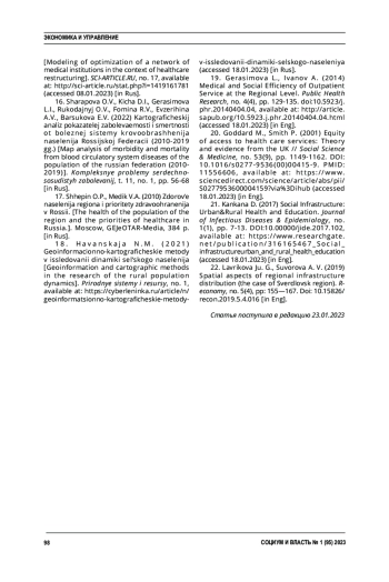 15. 	Трофименко, А. С. Моделирование оптимизации сети медицинских учреждений в условиях реструктуризации здравоохранения / А. С. Трофименко // SCI-ARTICLE.RU. - 2015. - № 17. - URL: http://sci-article.ru/stat.php?i=1419161781 (дата обращения: 08.01.2023).