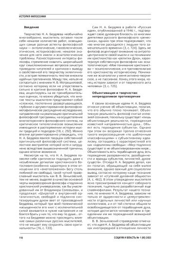 Творчество Н. А. Бердяева необычайно многообразно, мыслитель оставил после себя немалое количество работ, освещающих самые разные аспекты философской науки — онтологические, гносеологические, этические, историософские; немалое значение для него имели и эсхатологические проблемы. Разносторонние интересы фи - лософа, стремление охватить широчайший круг смысложизненных вопросов зачастую приводили читателей и критиков к выводу о свойственной его творчеству эклектичности, а острая полемичность текстов множила идейных противников. Между тем, нельзя не согласиться с мнением Н. В. Мотрошиловой, согласно которому если не упорствовать сильно в критике философии Н. А. Бердяева, акцентируясь на ее пренебрежитель - ных оценках, то можно убедиться, что многие тексты мыслителя представляют собой «сложное, постепенно развертывающееся, глубокое и аргументированное философскометафизическое рассуждение-исследование, направленное на реализацию оригинальной философской программы, на осуществление многостороннего философского синтеза, на критическое типологическое осмысление имеющихся в распоряжении истории мысли традиций и подходов» [18, с. 292]. Можно вполне аргументированно утверждать, что Н. А. Бердяев явился творцом собственной оригинальной философской системы, целостное восприятие которой хотя и затруднено вследствие вышеозначенной причины, однако вполне возможно.