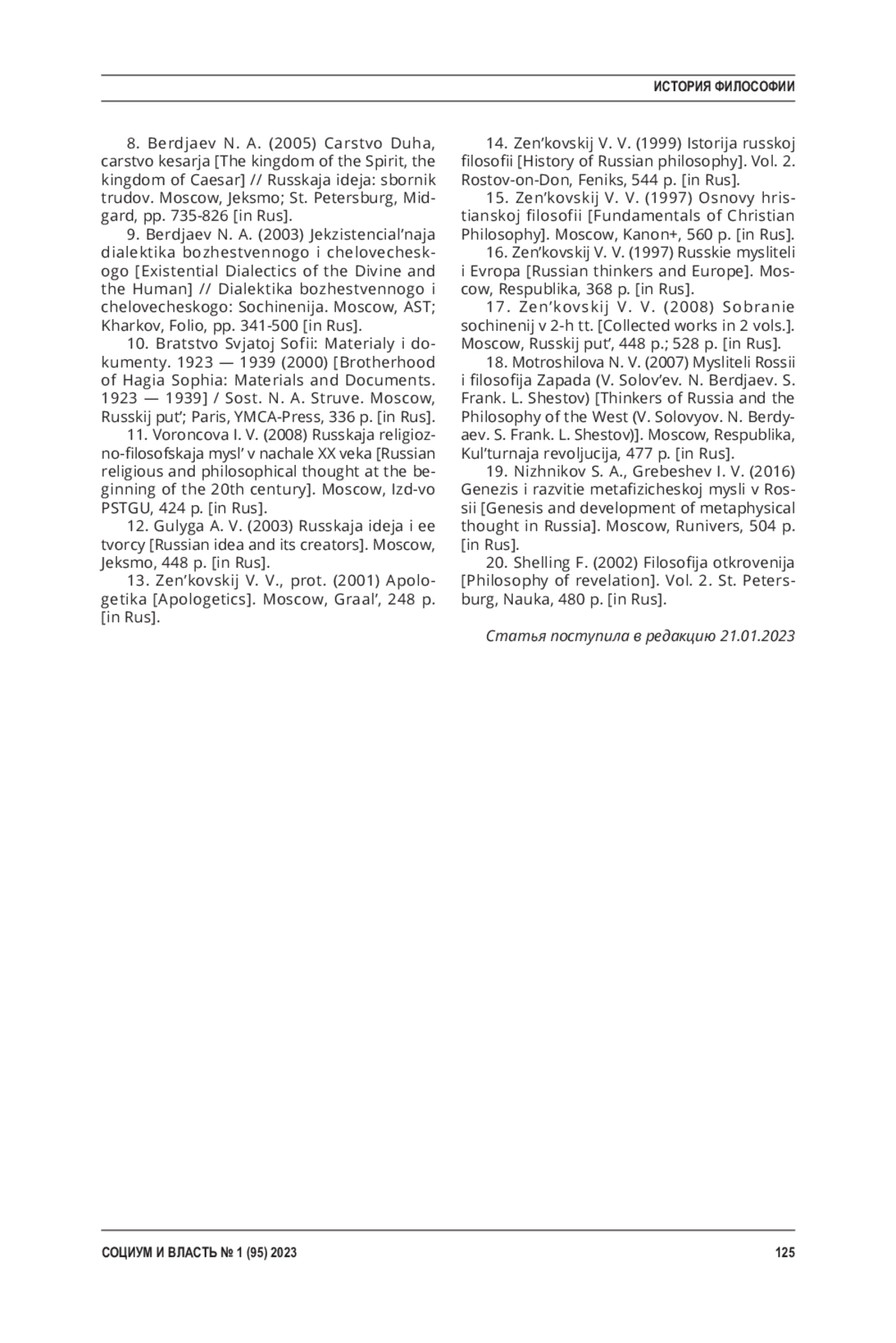 8. 	Бердяев, Н. А. Царство Духа, царство кесаря / Н. А. Бердяев // Русская идея: сборник трудов. - М.: Эксмо; СПб.: Мидгард, 2005. - С. 735-826.