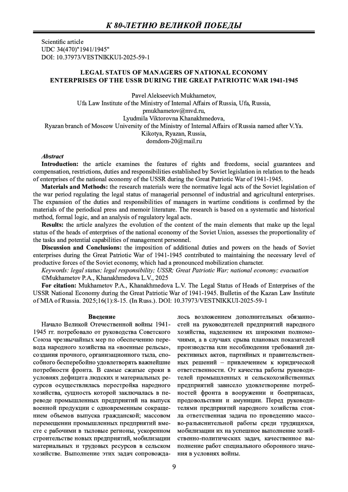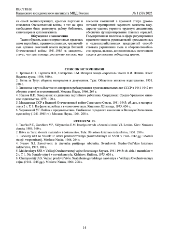 Обсуждение и заключение: возложение на руководителей советских предприятий в годы Великой Отечественной войны 1941-1945 гг. дополнительных обязанностей и полномочий способствовало поддержанию необходимого уровня производительных сил советской экономики, обеспечивая ее мобилизационный характер.