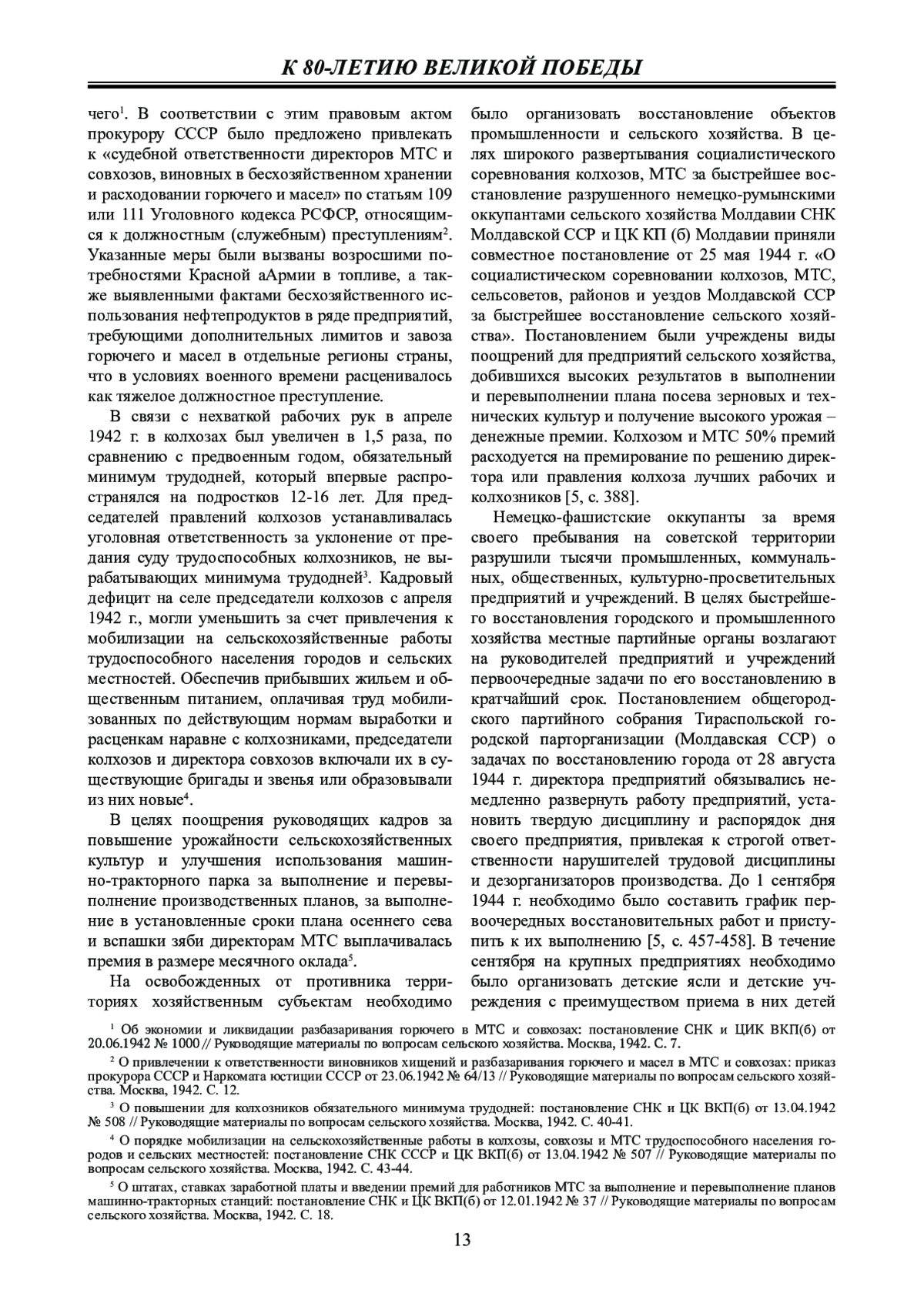 5. 	Молдавская ССР в Великой Отечественной войне Советского Союза. 1941-1945: сб. док. и материалов в 2 т. Т. 1. На фронтах войны и в советском тылу. Кишинев: Штиинца, 1975. 656 с.