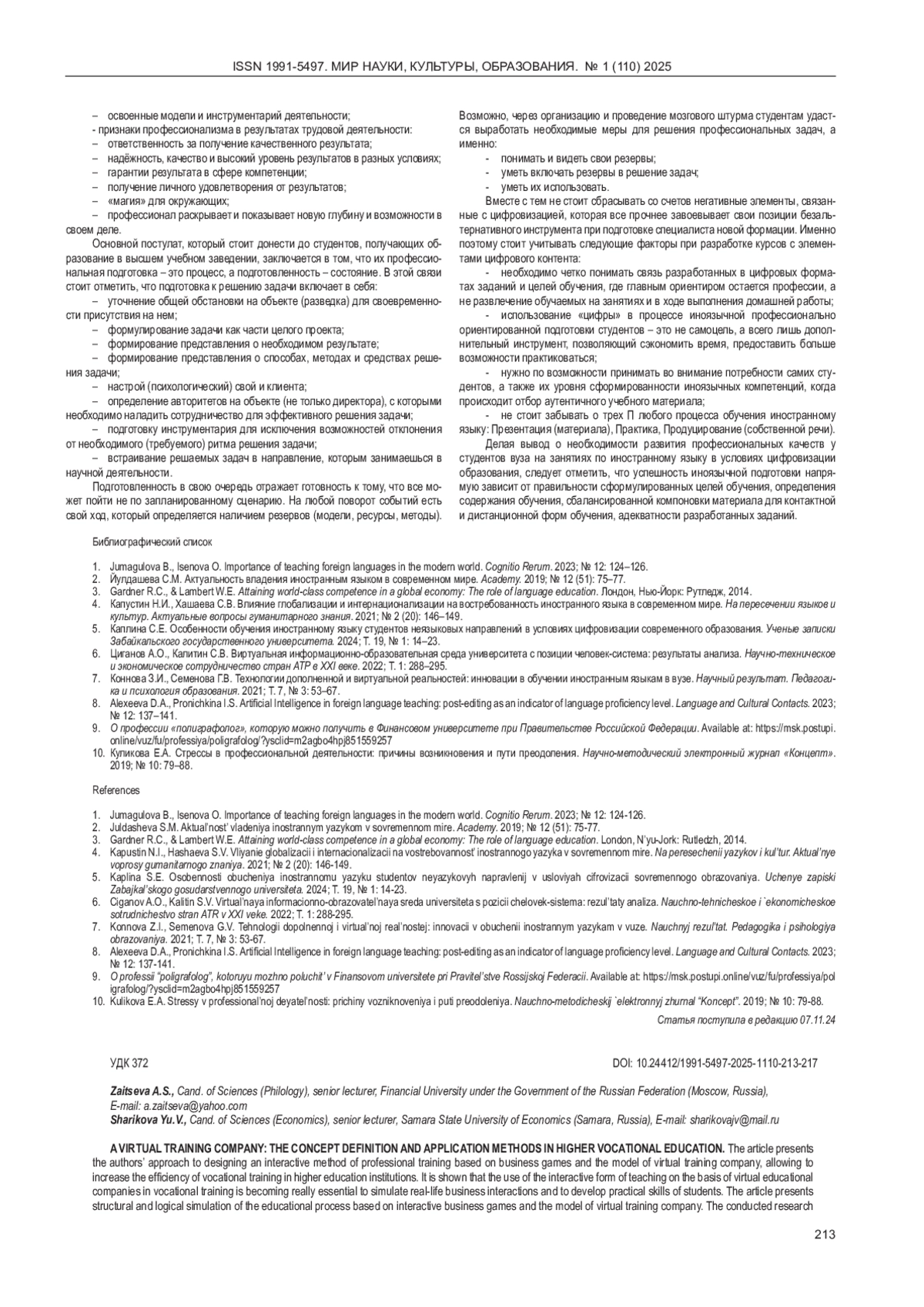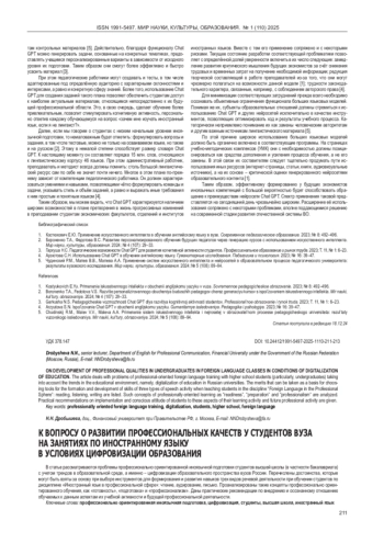 5. 	Каплина С.Е. Особенности обучения иностранному языку студентов неязыковых направлений в условиях цифровизации современного образования. Ученые записки Забайкальского государственного университета. 2024; Т 19, № 1: 14-23. EDN: CEKLOY