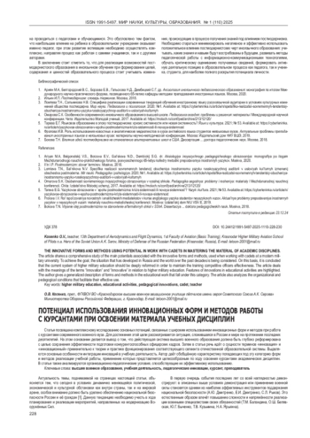 2. Дмитренко А.Ю., Дмитренко Е.И. Структура АУК. Применение инновационных методов обучения при формировании профессиональных компетенций у курсантов авиационных вузов. Вестник военного образования. 2023; № 6 (45): 63-68. EDN: NXNEKH