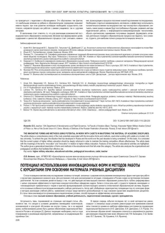 3. Рыков С.Л. В поисках идеальной методики инновационная педагогическая система военно-учебного заведения. Вестник военного образования. 2022; № 2 (35): 77-81. EDN: PEJKKE