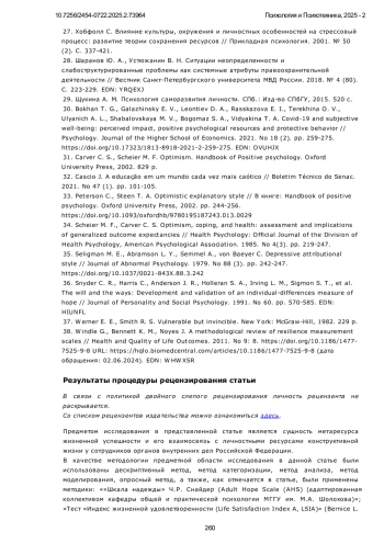 8. Гордеева Т. О., Сычев О. А., Осин Е. Н. Диагностика диспозиционного оптимизма, валидность и надежность опросника ТДО-П // Психология. Журнал Высшей школы экономики. 2021. № 18(1). С. 34-55. DOI: 10.17323/1813-8918-2021-1-34-55