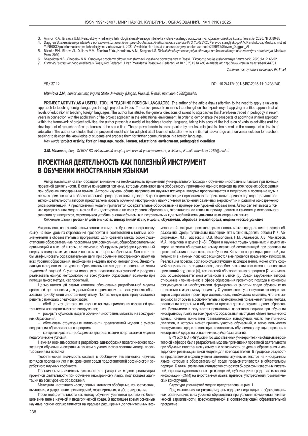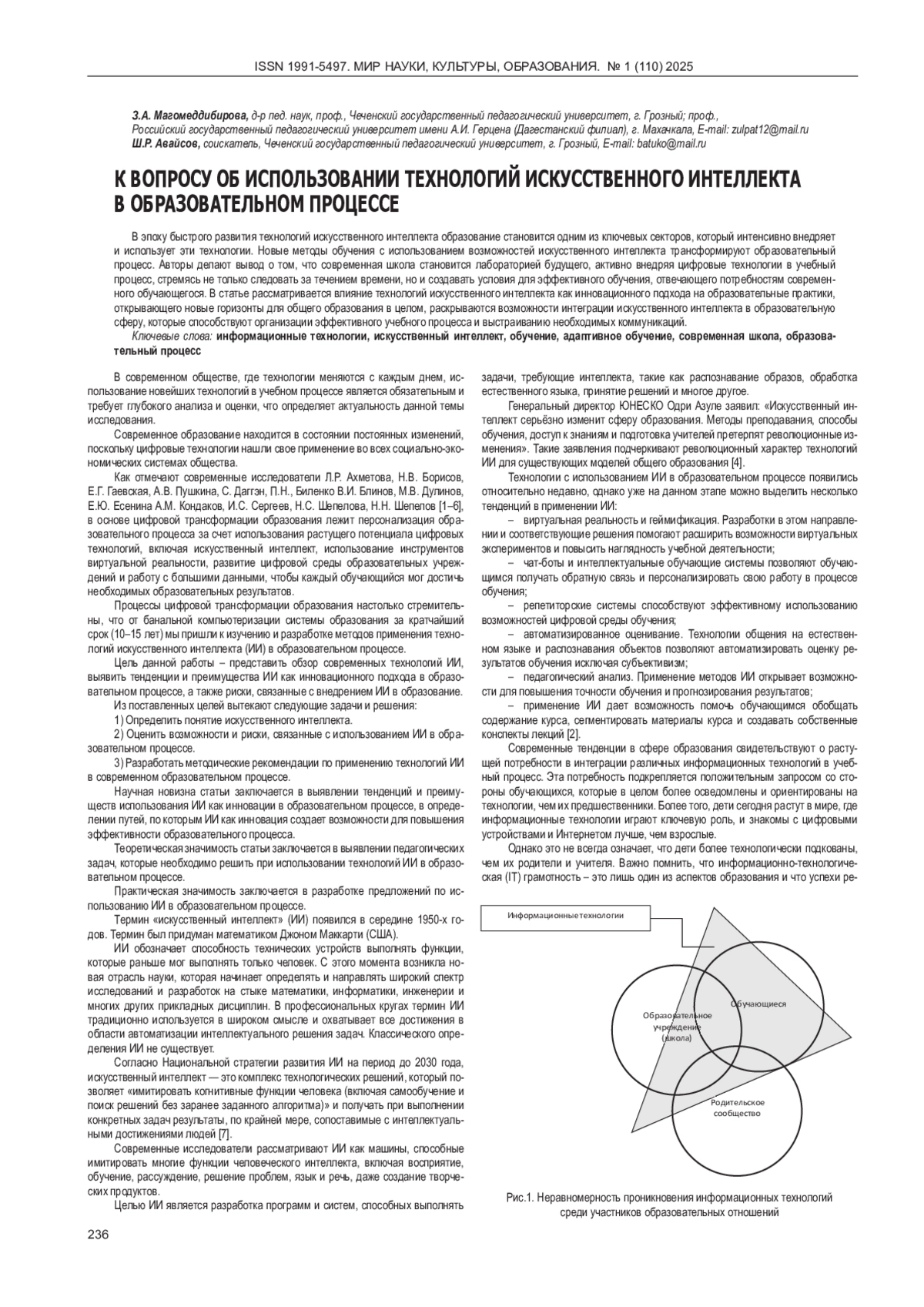 3. 	Амиров Р.А., Билалова У.М. Перспективы внедрения технологий искусственного интеллекта в сфере высшего образования. Управленческое консультирование. 2020; № 3: 80-88. EDN: XKTQTC