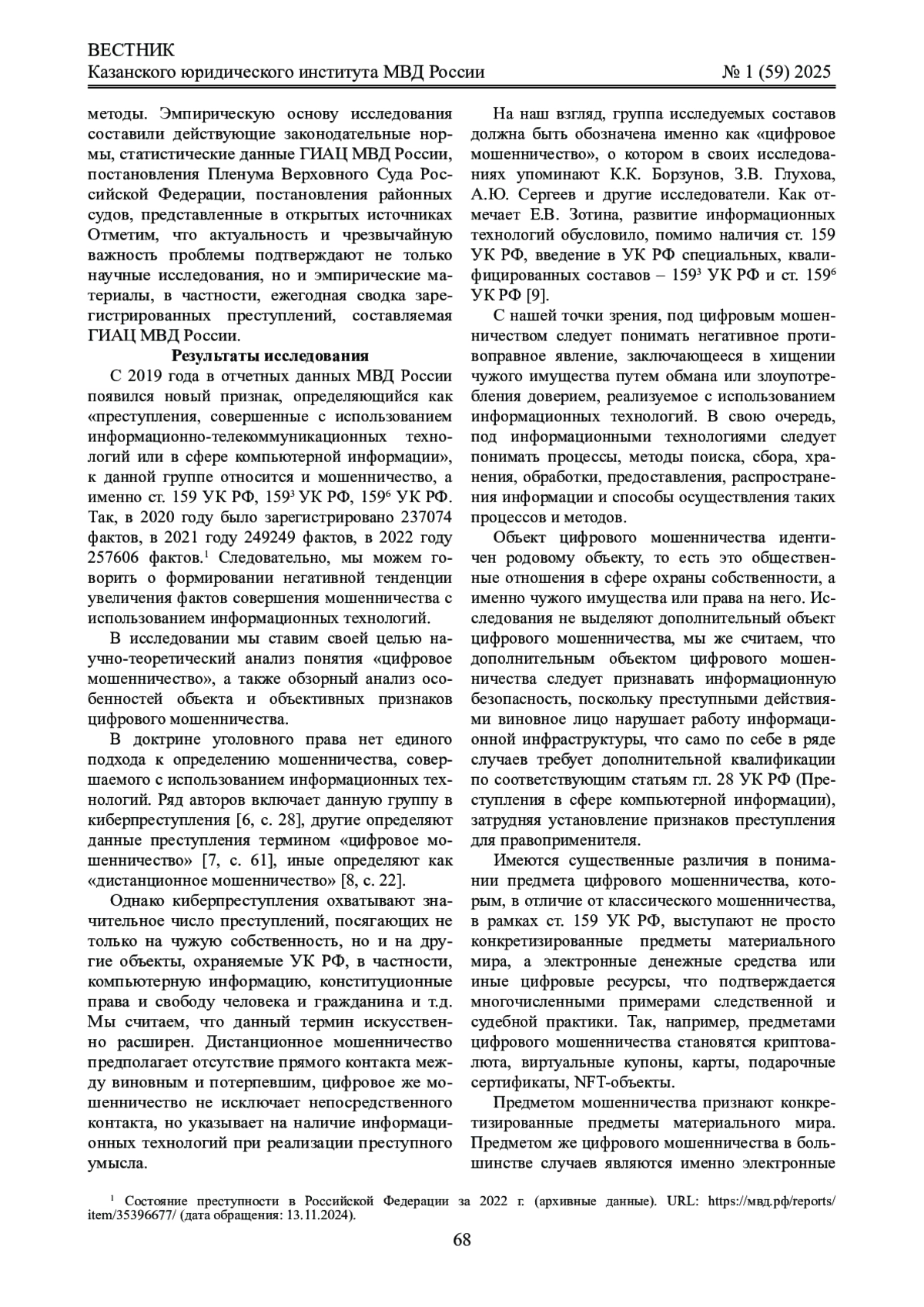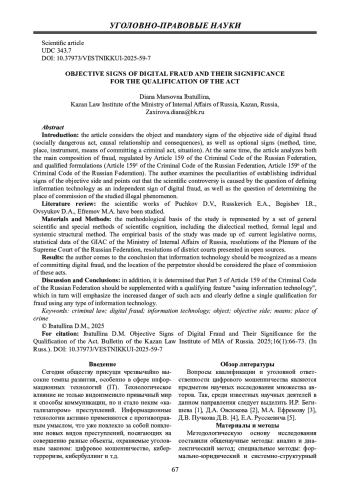 Результаты исследования: автор приходит к выводу, что информационные технологии следует признавать именно средством совершения цифрового мошенничества, а местом совершения данных деяний необходимо считать местонахождение виновного лица.