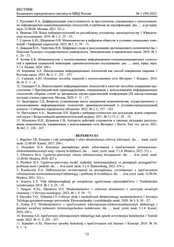 1. 	Бегишев И.Р. Понятие и виды преступлений в сфере обращения цифровой информации: дис. … канд. юрид. наук: 12.00.08. Казань, 2017. 204 с. EDN: YRUCWK