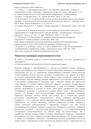 10. Волкова Т. А., Коврова А. С. Качество устного последовательного перевода и параметры исходного текста: экспериментальное исследование и дидактический аспект // Вестник Пермского национального исследовательского политехнического университета. Проблемы языкознания и педагогики, 2021. № 3. С. 139-149.