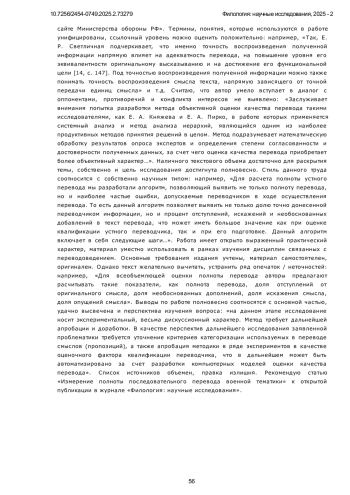 8. Княжева Е. А., Пирко Е. А. Оценка качества перевода в русле методологии системного анализа // Вестник ВГУ. Серия: Лингвистика и межкультурная коммуникация. 2013. № 1. С. 145-151.