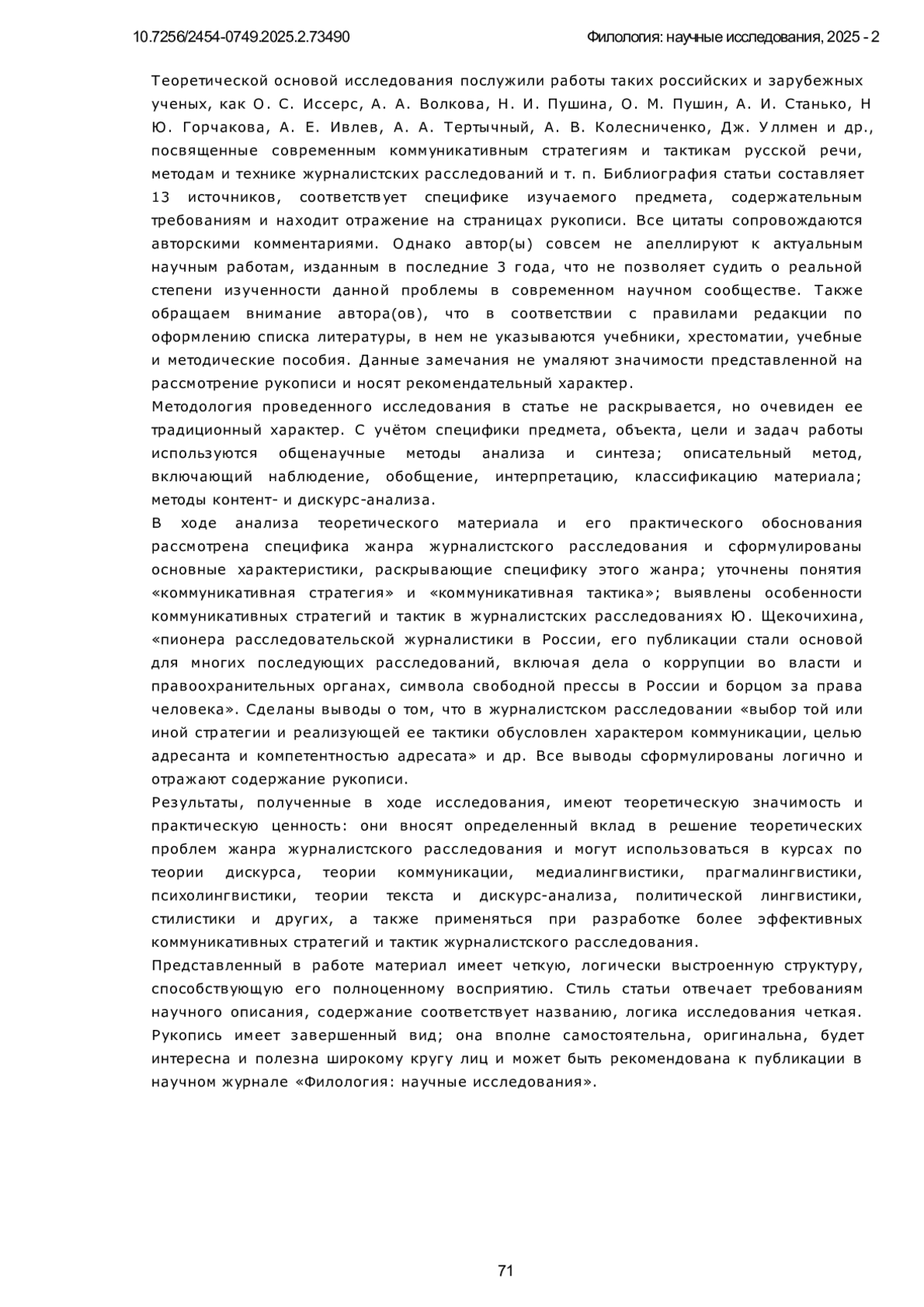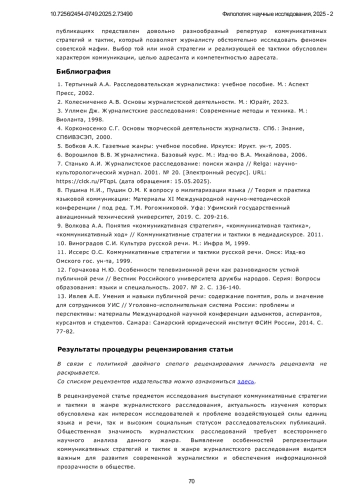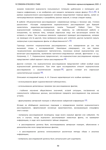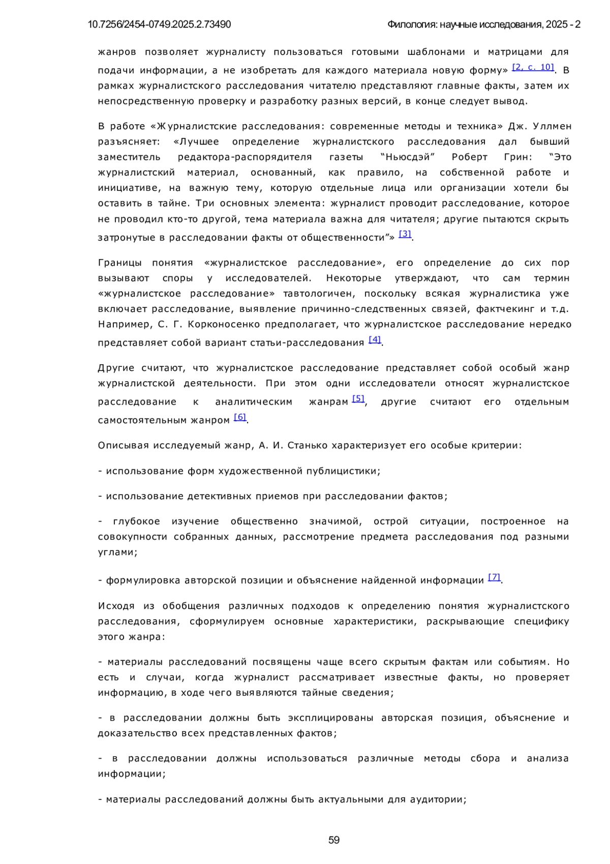 7. 	Станько А.И. Журналистское расследование: поиски жанра // Relga: научно-культорологический журнал. 2001. № 20. [Электронный ресурс]. URL: https://clck.ru/PTqpL (дата обращения: 15.05.2025).