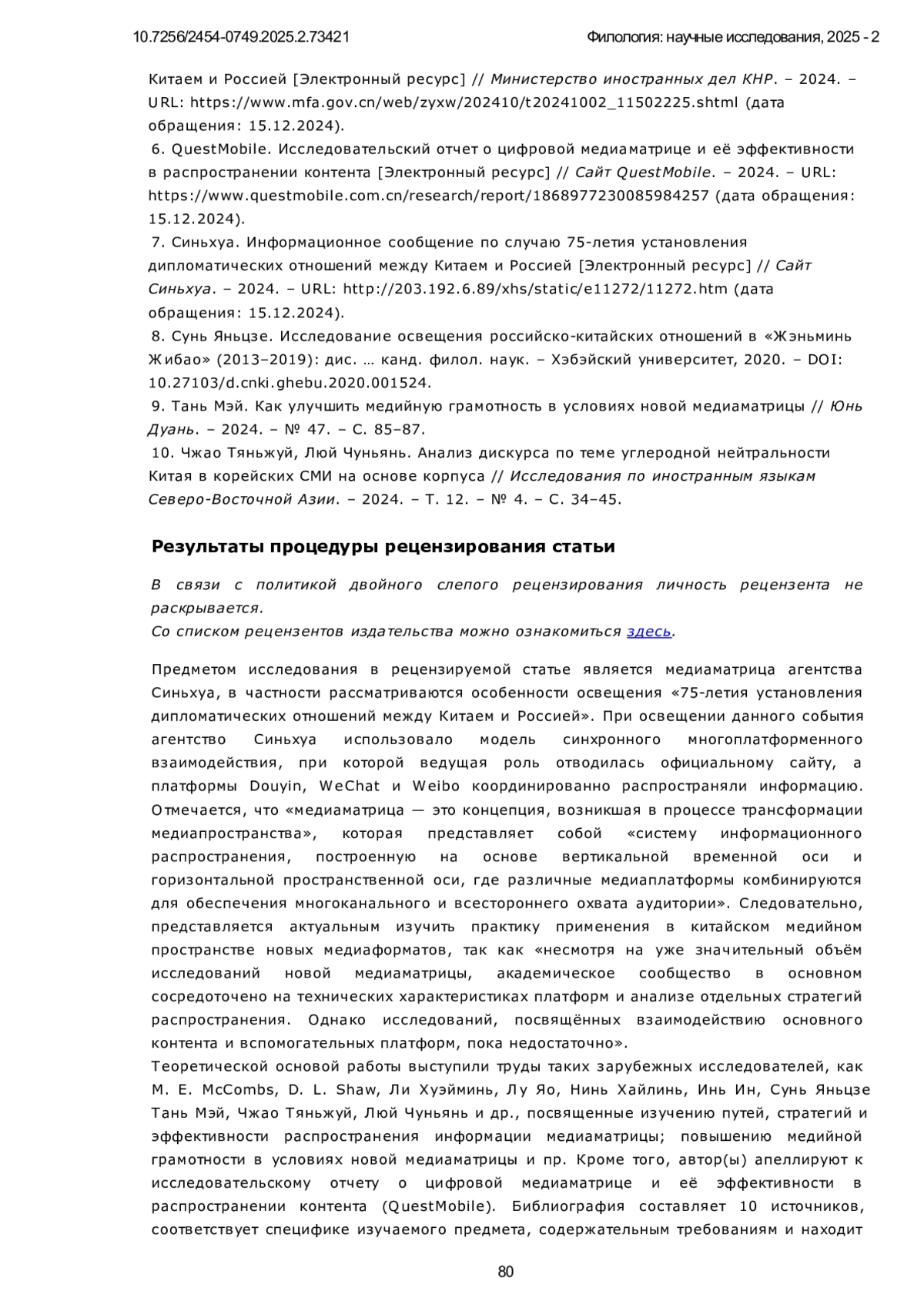 8. Сунь Яньцзе. Исследование освещения российско-китайских отношений в “Жэньминь Жибао” (2013-2019): дис. … канд. филол. наук. - Хэбэйский университет, 2020. -. DOI: 10.27103/d.cnki.ghebu.2020.001524