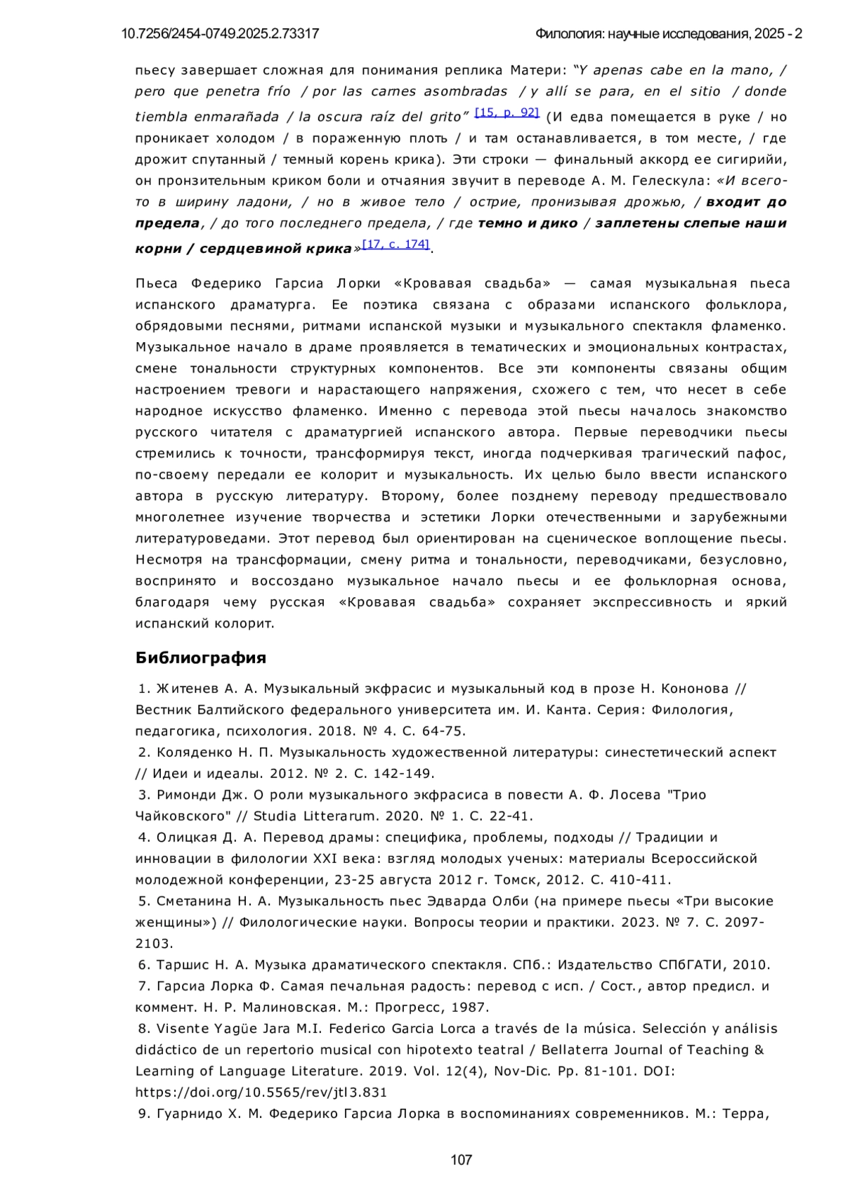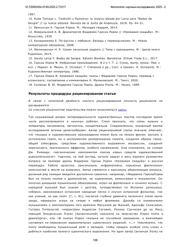 6. Таршис Н. А. Музыка драматического спектакля. СПб.: Издательство СПбГАТИ, 2010. 7. Гарсиа Лорка Ф. Самая печальная радость: перевод с исп. / Сост., автор предисл. и коммент. Н. Р. Малиновская. М.: Прогресс, 1987.