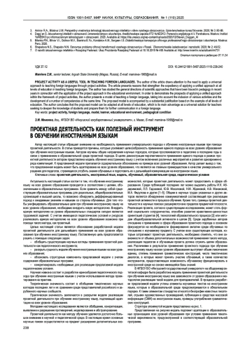 Автор настоящей статьи обращает внимание на необходимость применения универсального подхода к обучению иностранным языкам при помощи проектной деятельности. В статье приводятся причины, которые усиливают целесообразность применения единого подхода на всех уровнях образования при обучении иностранным языкам. Автором изучены общие направления научных подходов, которые прослеживаются в педагогике в последние годы в связи с применением в образовательной среде проектной подхода. В целях демонстрации перспективности применения единого подхода в рамках проектной деятельности автором представлена модель обучения иностранному языку с учетом включения различных мероприятий и развития одновременно ряда компетенций. К предложенной модели прилагается содержательное обоснование на примере всех уровней образования. Автор делает вывод о том, что предложенная модель может быть адаптирована на всех уровнях образования, что является ее главным преимуществом в качестве универсального решения для педагогов, стремящихся углубить знания обучаемых и подготовить их к дальнейшей коммуникации на иностранном языке.