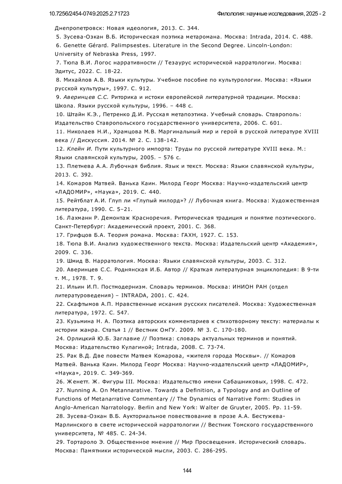 5. 	Зусева-Озкан В.Б. Историческая поэтика метаромана. Москва: Intrada, 2014. С. 488.
