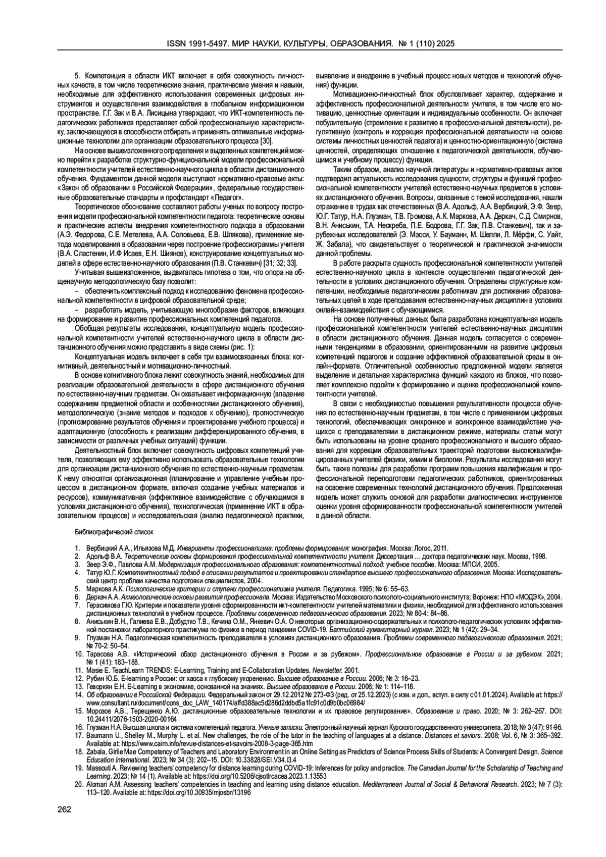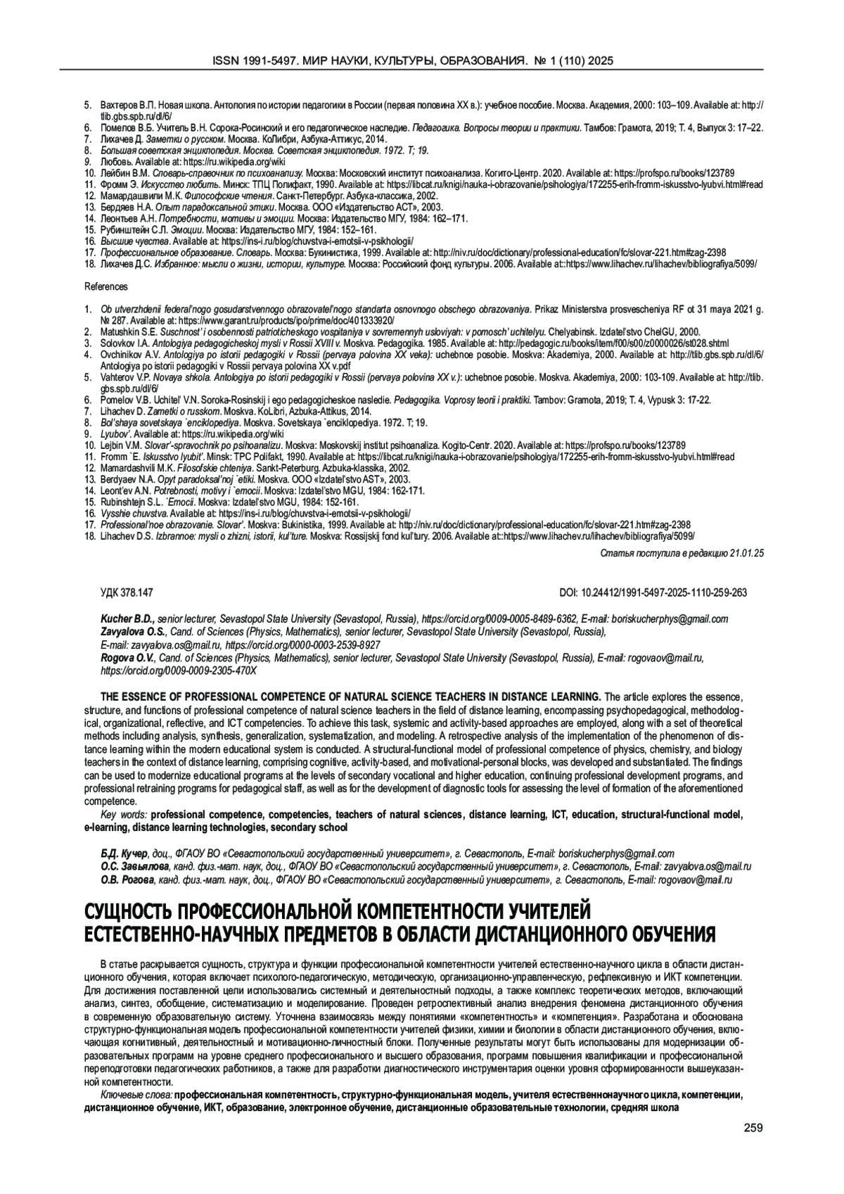 22. 	Нескреба Т.А. Исследование сформированное™ цифровой компетентности педагогов в условиях дистанционной образовательной среды. Московский педагогический журнал. 2024; № 2: 96-110. EDN: OPHNBZ