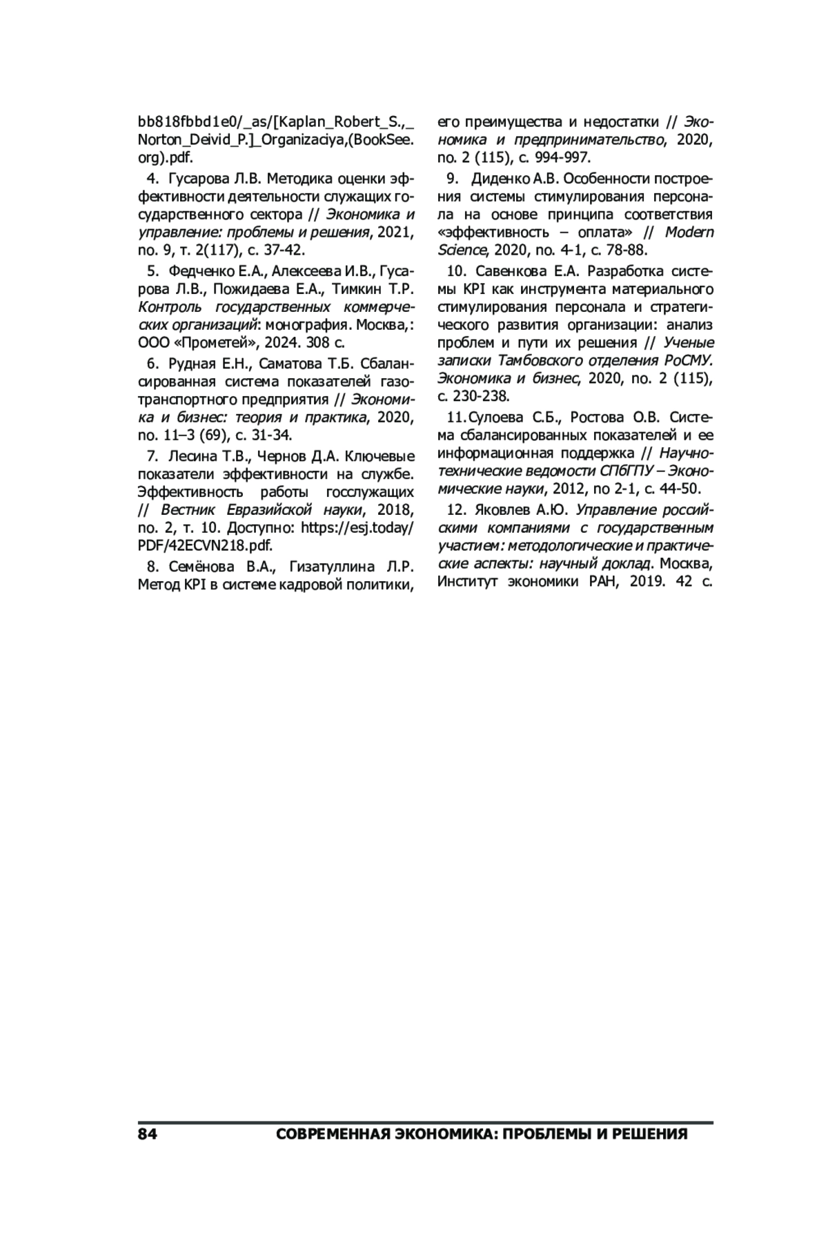 4. 	Гусарова Л.В. Методика оценки эффективности деятельности служащих государственного сектора // Экономика и управление: проблемы и решения, 2021, no. 9, т. 2(117), с. 37-42.